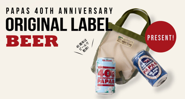 パパス40th記念ノベルティのパパスビールもご用意しております。(税込50,000円以上お買い上げ)