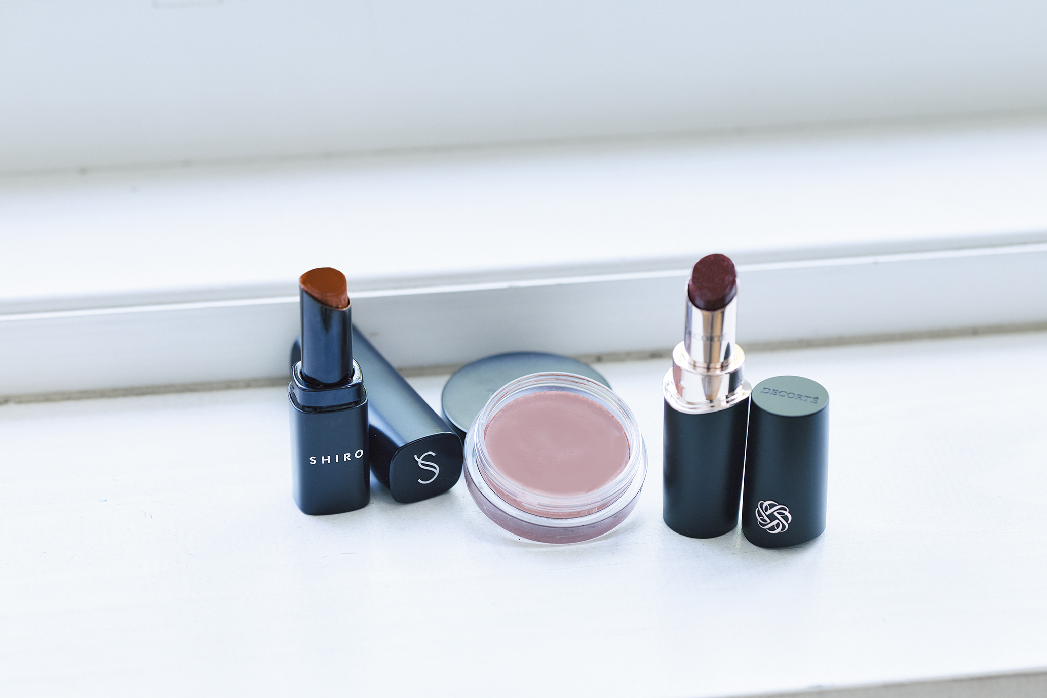 リップには指でふんわりと、最後に唇の中心だけ重ねて、強く発色させてください。