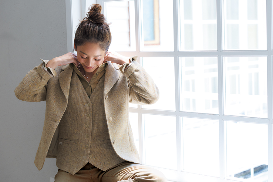 ■ベージュツイードジャケット×チョコレートブラウン