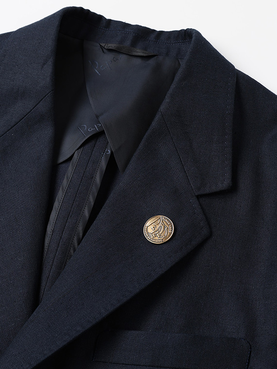 オリジナルのメタル釦はパパスロゴ+カジキを刻印。細部まで丁寧に作り込んでいます。