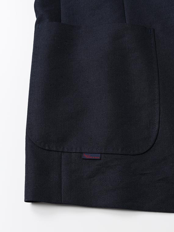 デニムから着想を得た先染めシャンブレーツイルにより程よいカジュアル感を備えつつ、尾州産地ならではのリネン×モヘア混という独特な風合いが上質さと高級感を生み出します。