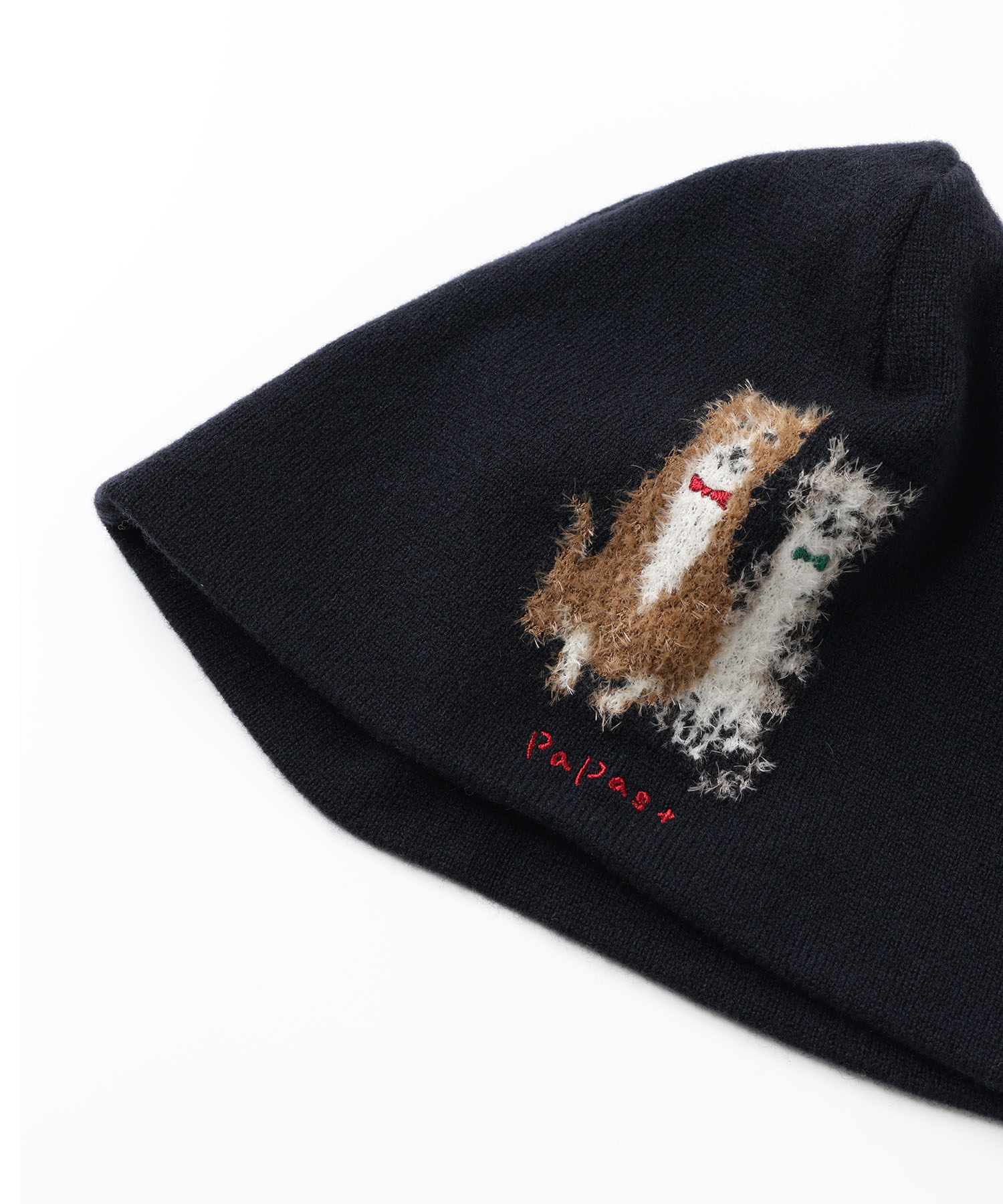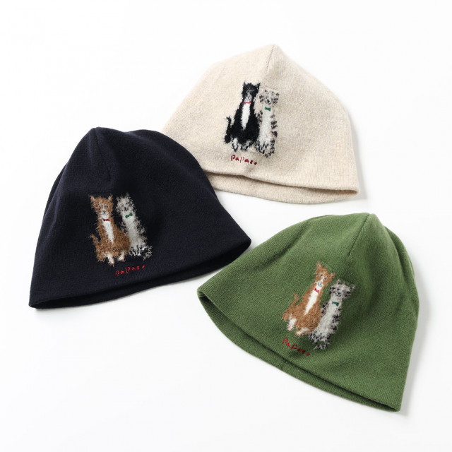 ウールニットインターシャ7G ネコ柄 ニットキャップ(¥19,800 税込)