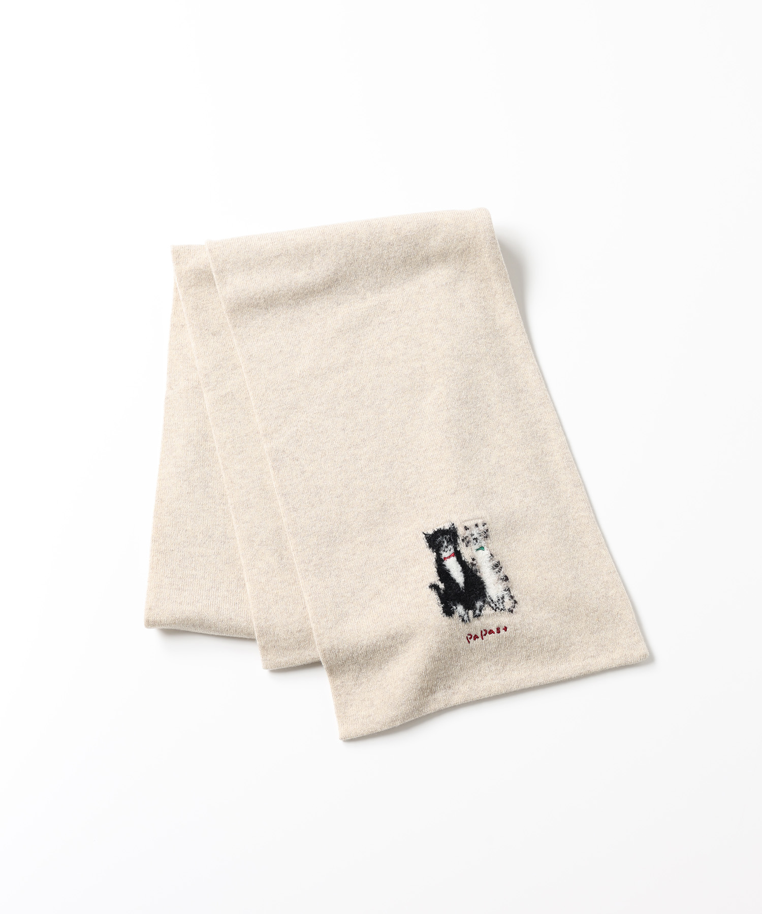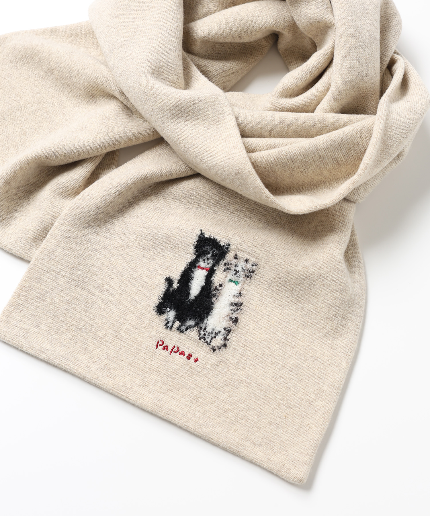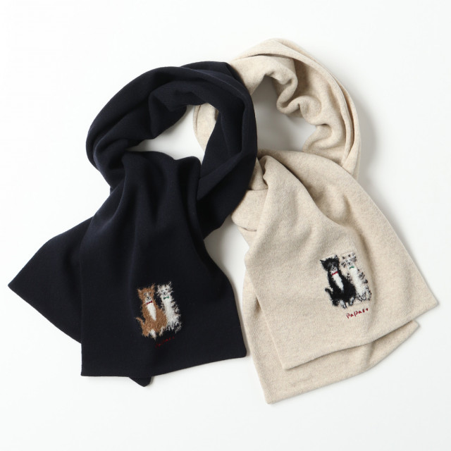 ウールニットインターシャ7G ネコ柄 マフラー(¥28,600 税込)