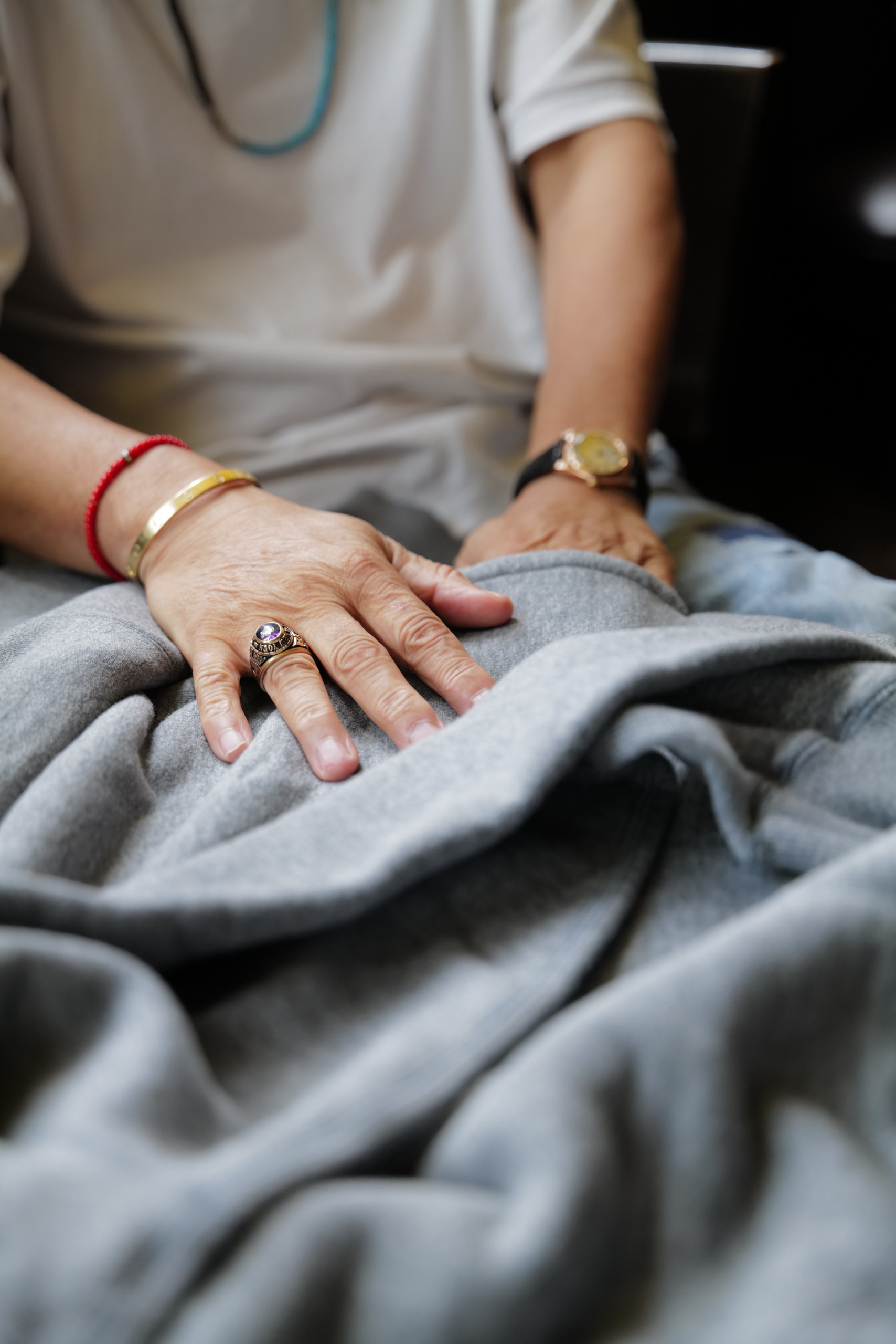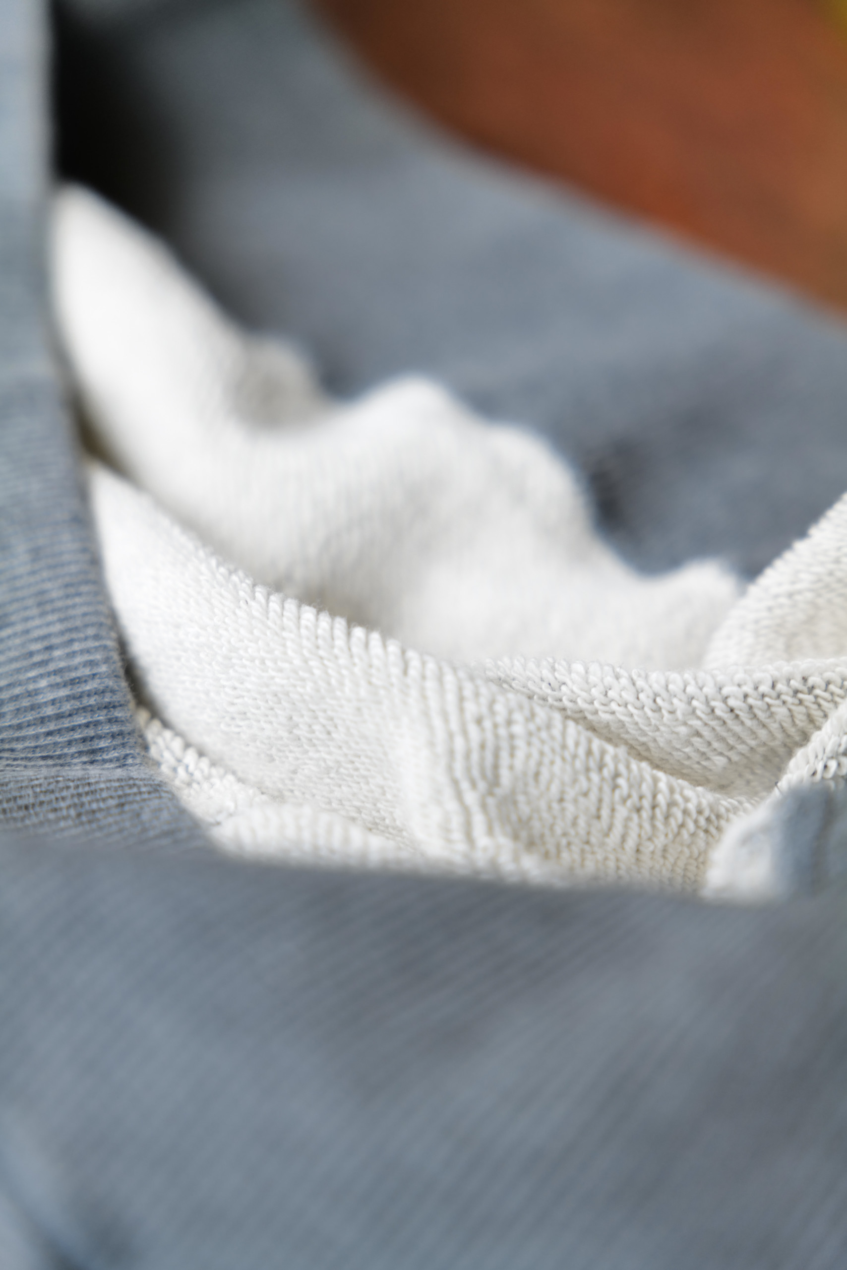 こだわりの吊り裏毛でつくられた「パパス」のスウェット生地。着心地にも風合いにもこだわった、数十年来の定番です。