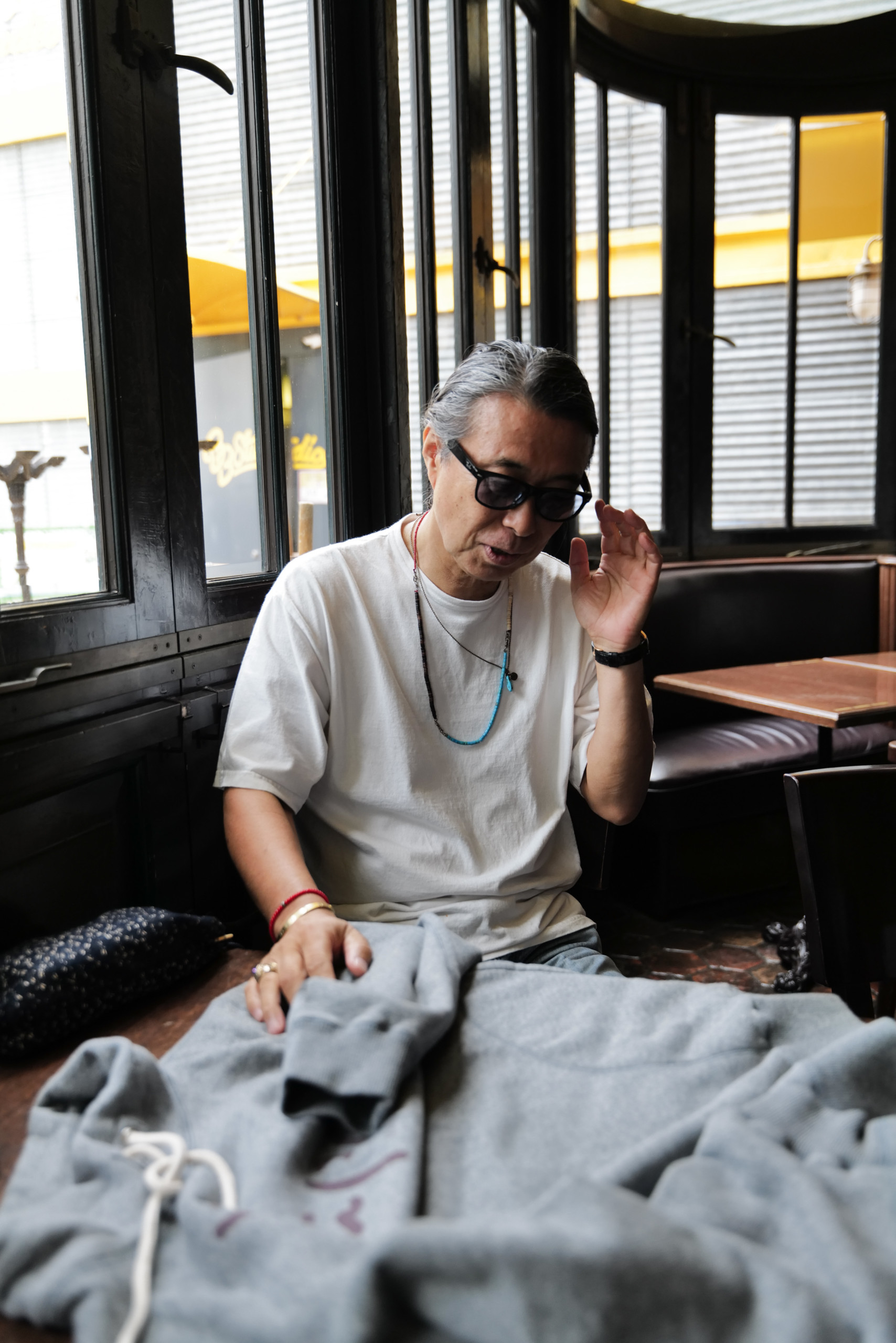 自身のブランド「モヒート」を手がける傍ら、今季からパパスのプロダクトディレクターとして参画した山下裕文氏。ふたりの縁は、山下氏が「バックドロップ」の姉妹店だった「プロペラ」でプレスやバイヤーをつとめていたことから始まりました。次回のWebマガジンでは、山下氏がこのスウェットの生地をつくっている工場を訪ねます!