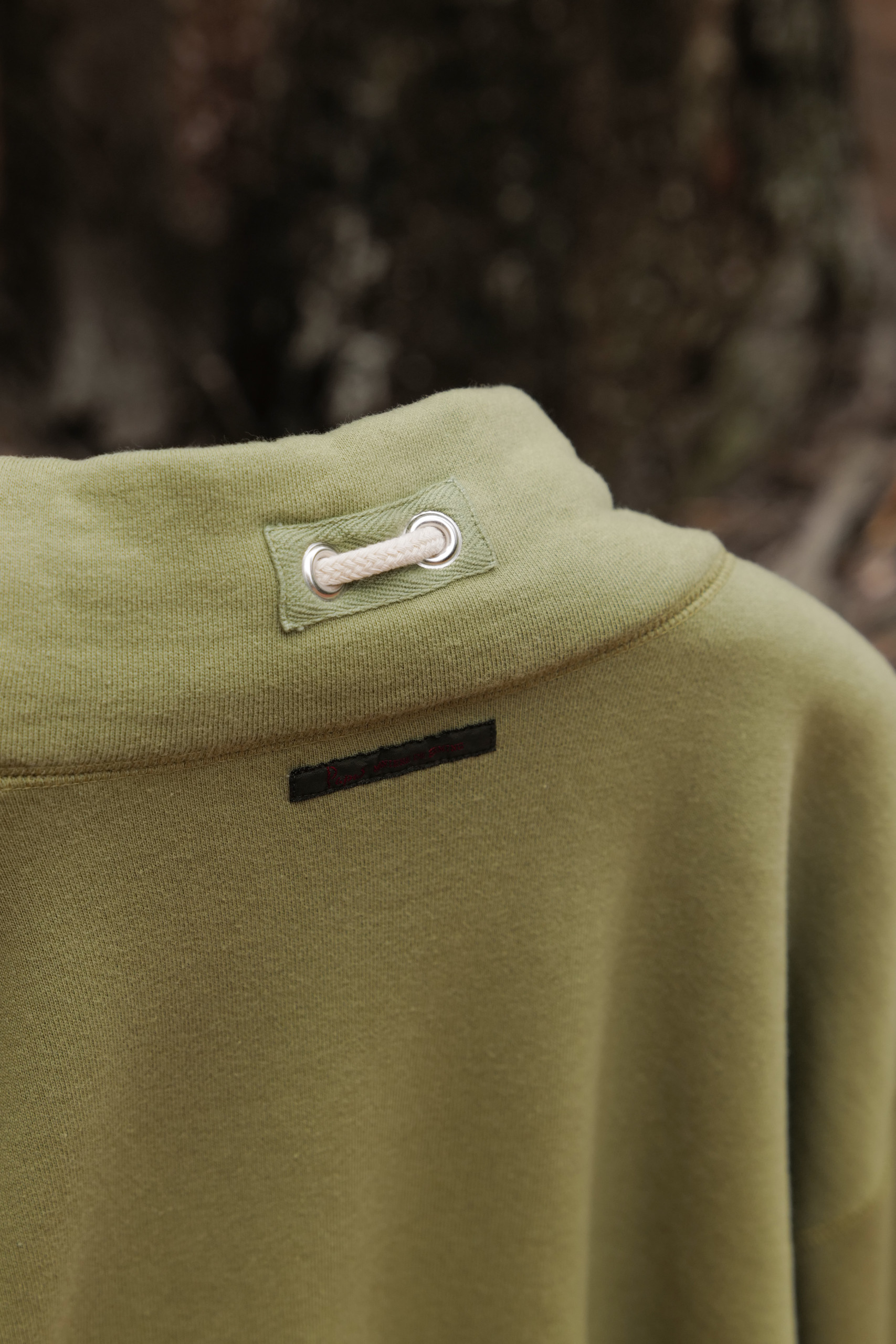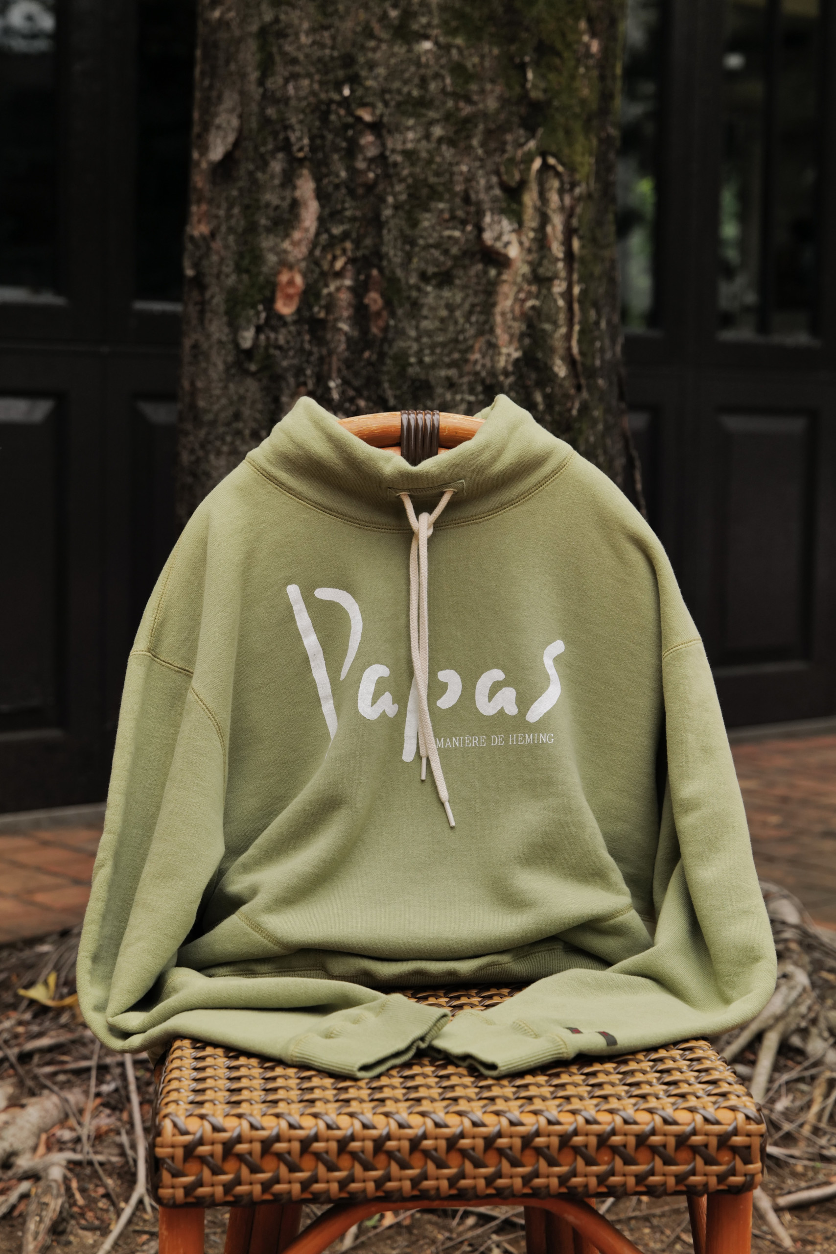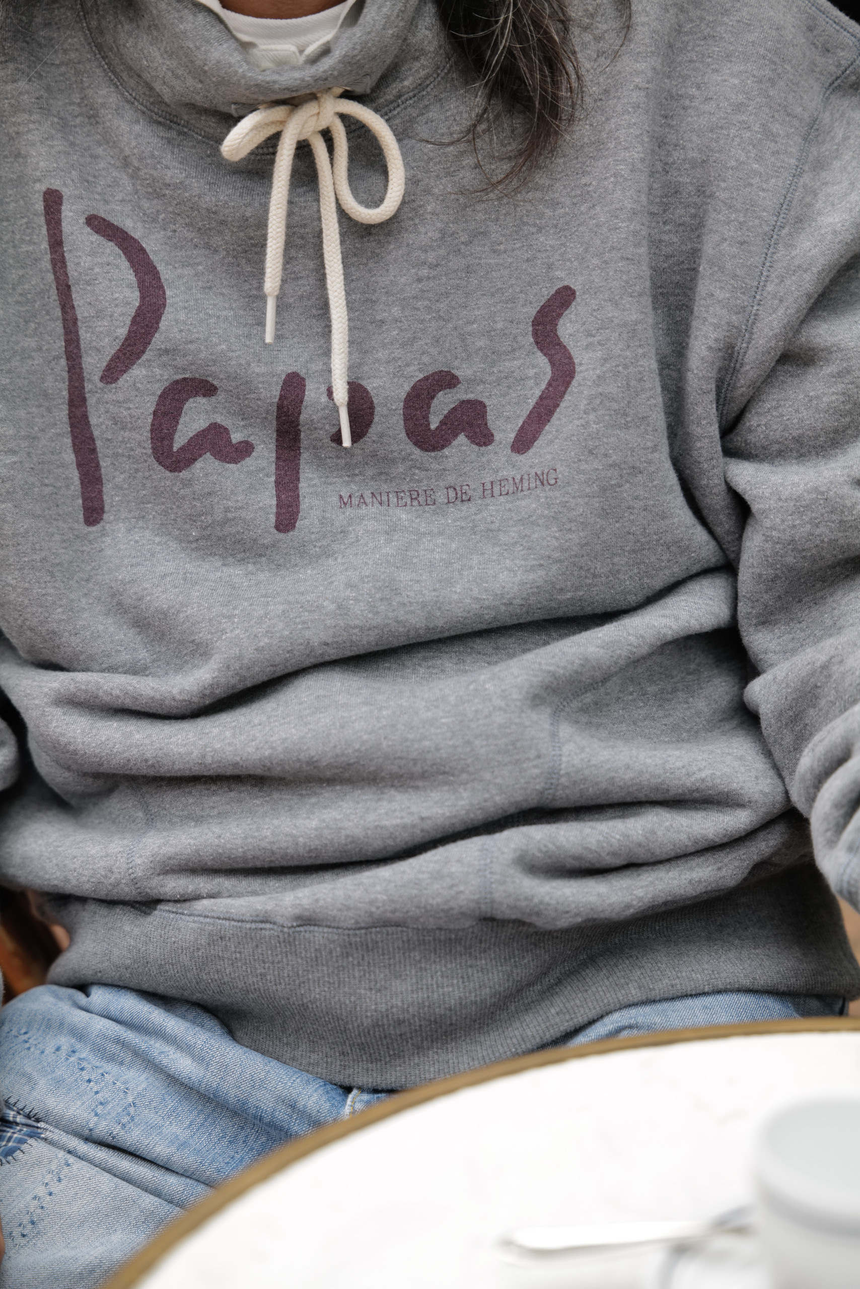 この秋、そんなパパスのスウェットに、今までにないニューモデルが登場しました! 実はこの秋から数量限定で丸の内本店のみで展開していたのですが、早速完売間近。かつてこのWebマガジンにも登場してくれたプロダクトディレクターの山下裕文氏が手がけたこちらは、パパス自慢のスウェット生地はそのままに、ゆとりのあるシルエットやハイネック仕様にアレンジ。クルーネックとパーカーの中間ともいえる雰囲気で、ドローストリングがアクセントとなり1枚で着ても存在感抜群です。