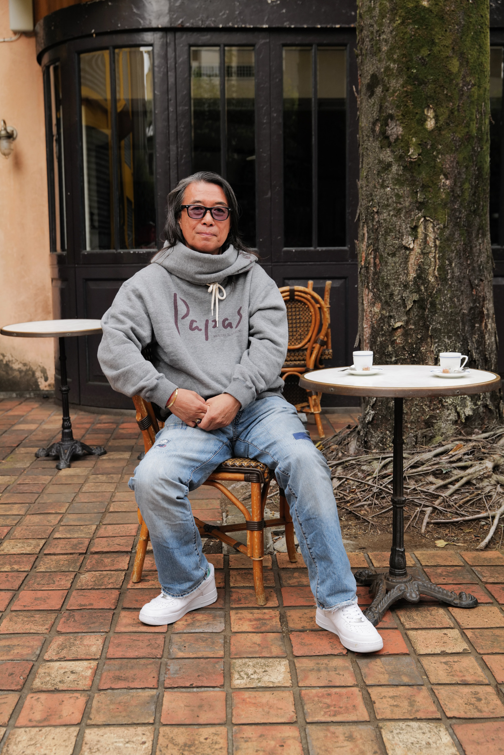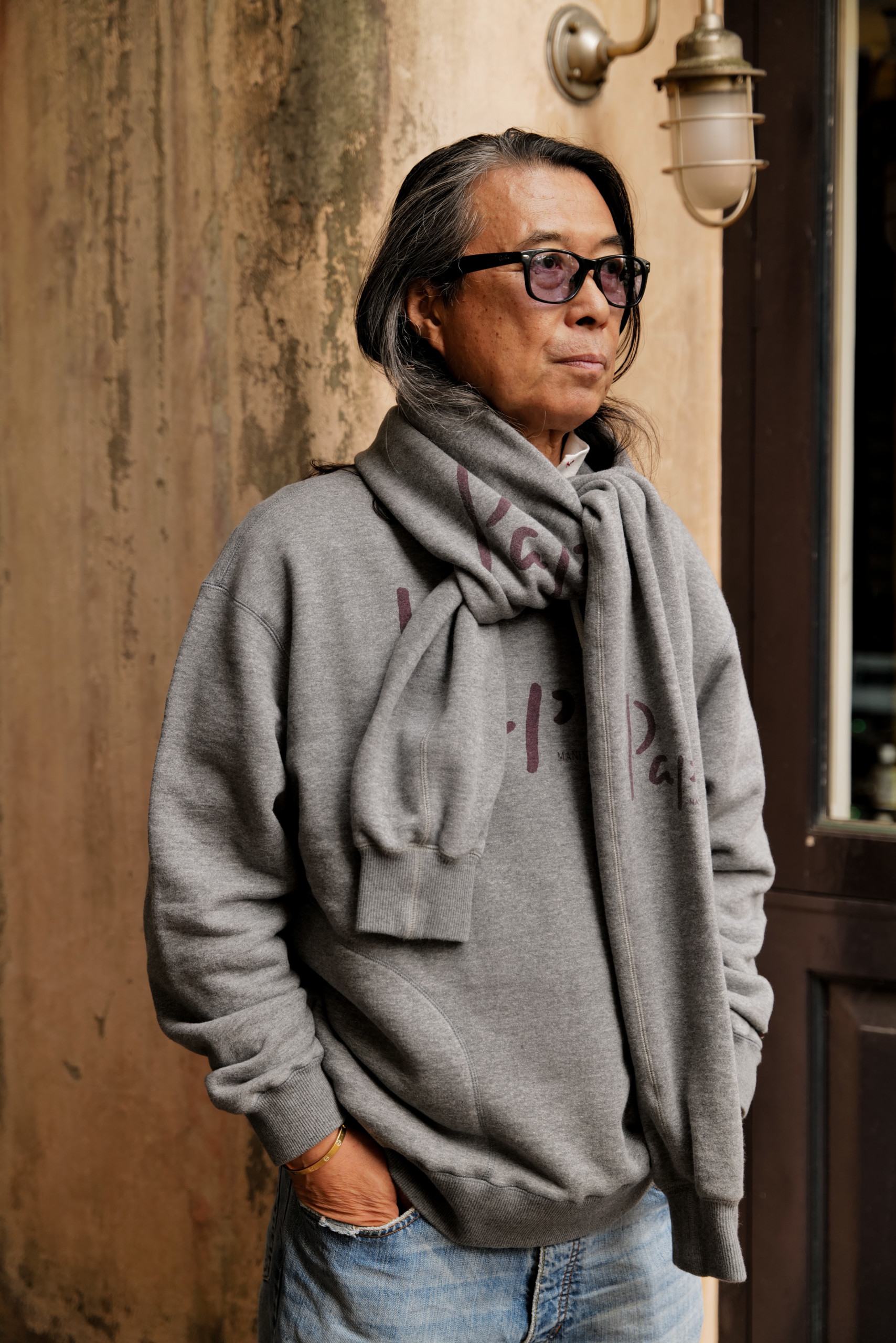 ――そうですか! あの一時代を築いたスウェットシャツに影響を与えていたなんて、とても光栄だなあ・・・。実は今日、中曽根さんに新作のスウェットを着てもらおうと思って持ってきたんです。こちらはピスネームこそ付いていませんが、中曽根さんとも非常に親しいデザイナーであり、パパスのプロダクトディレクターに就任した山下裕文氏が制作に関わった、自信作です!