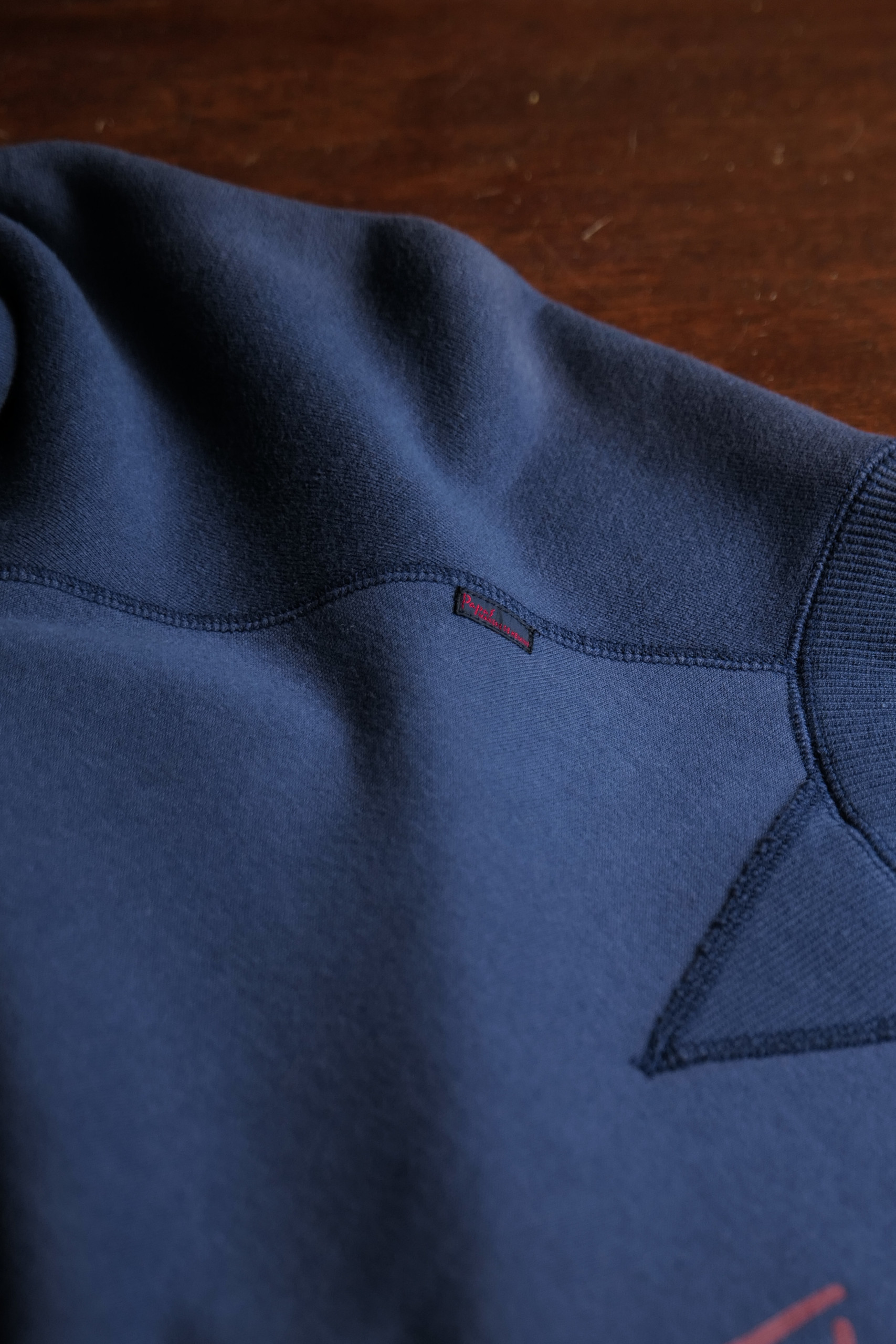 中曽根 これ、裏はループ(パイル)ですよね? ぼくの場合日本のスウェット=ループ、アメリカのスウェット=裏毛(裏起毛)というイメージが染み付いちゃってるから、どうしてもループはつくれないんです。わざとガサつくような糸を使ったり、ネックバインダーを斜行させて古っぽく見せるような、くだらないことばかりやってきましたが(笑)、パパスはこれが正解。やっぱりおじさんのスウェットは、ループがいいんですよ。
