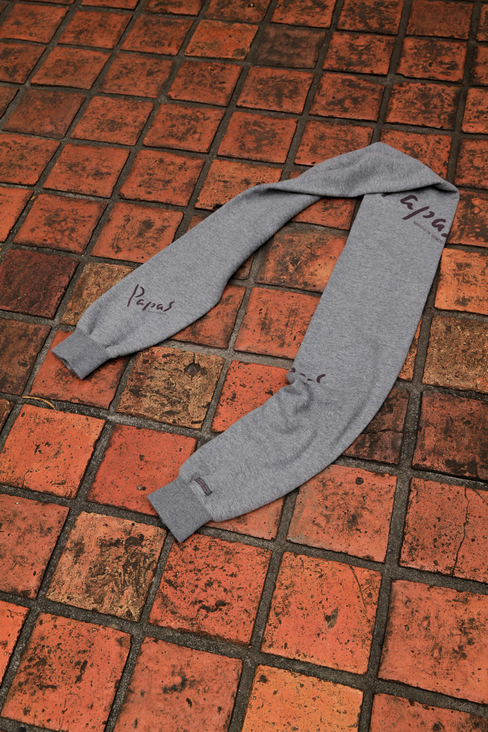 これからの装いに新たな風を吹かせてくれそうな、軽やかなスウェット素材のマフラー。巻いた時の見え方も計算して、ピスネームやロゴの配置にもこだわっています。素材はもちろん、パパス渾身の吊り裏毛。ウール素材のように季節を問わないから、秋冬のみならず、春まで長く使えそうです。