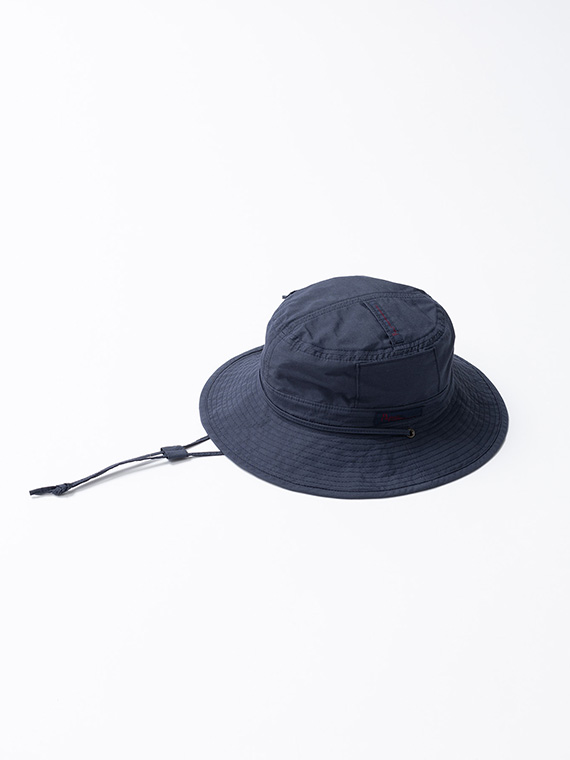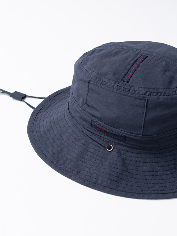 右サイドにはフラップ付きポケットを配し、左サイドにはフラップなしポケットを配置した遊び心のあるディテールが特徴。あご紐には共生地のストラップを使用し、取り外しも可能な仕様にすることでシーンに合わせた着用ができます。さりげないアクセントを効かせた、実用性とデザイン性を兼ね備えた仕上がりです。