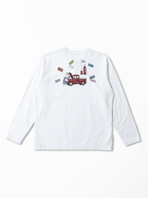 40/2天竺 シロクマ&トラックプリント 長袖Tシャツ