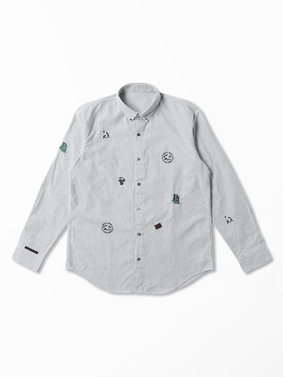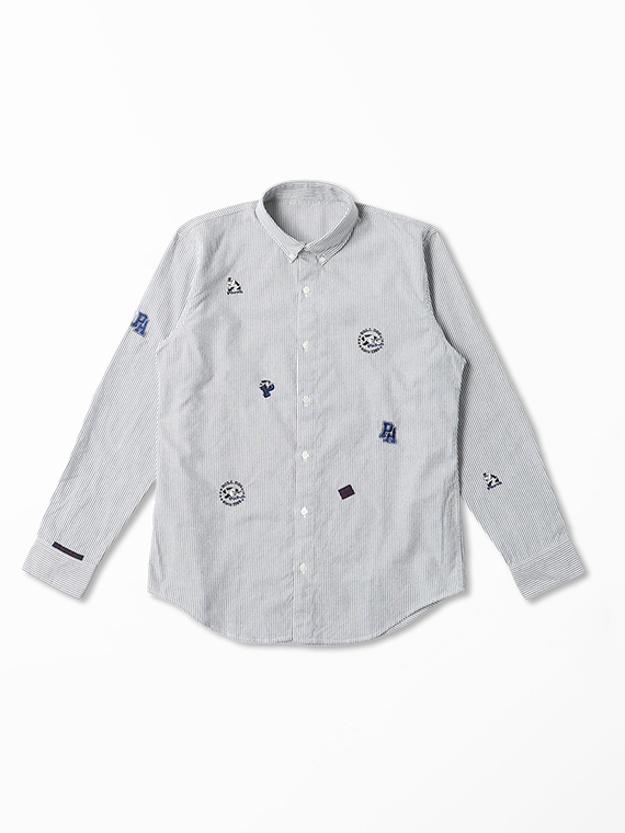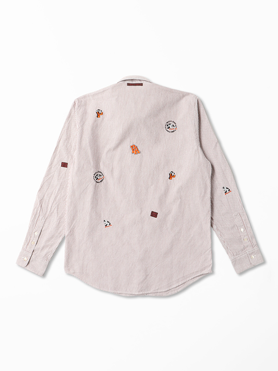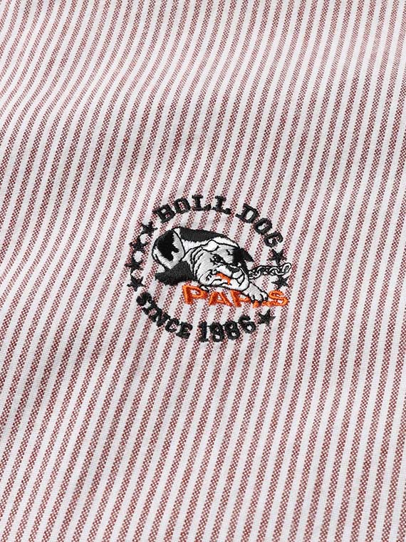コットンピンオックスストライプ BOLL DOG柄 刺繍シャツ