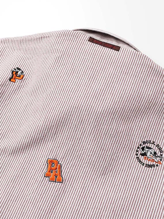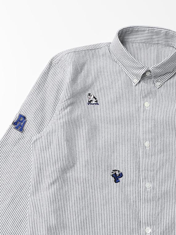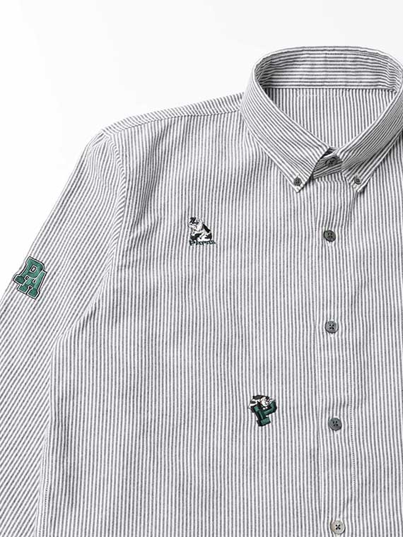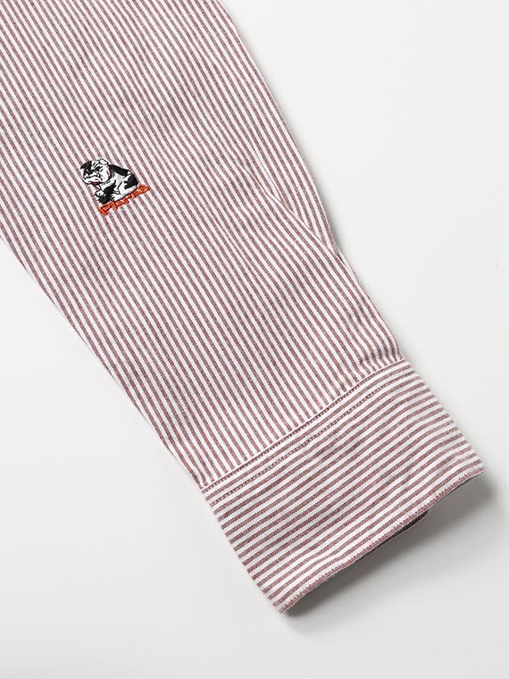 アメリカンスポーツリーグを思わせるBOLL DOGモチーフは、オックスフォードストライプとの相性も良く、どこかアメリカ東海岸の空気感を感じさせる一枚です。