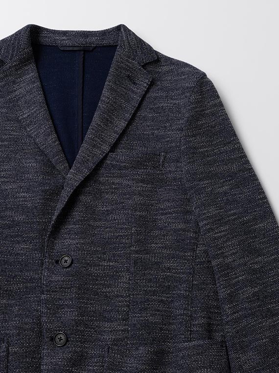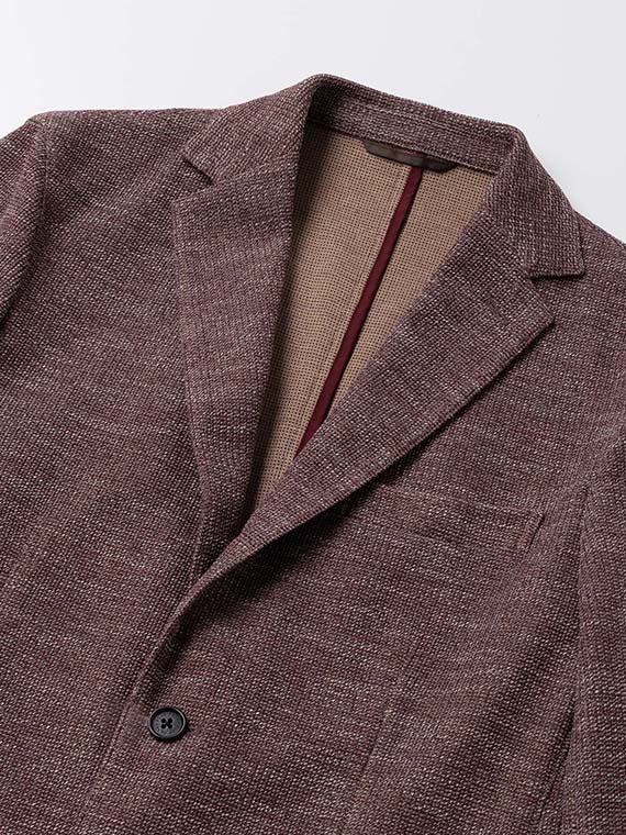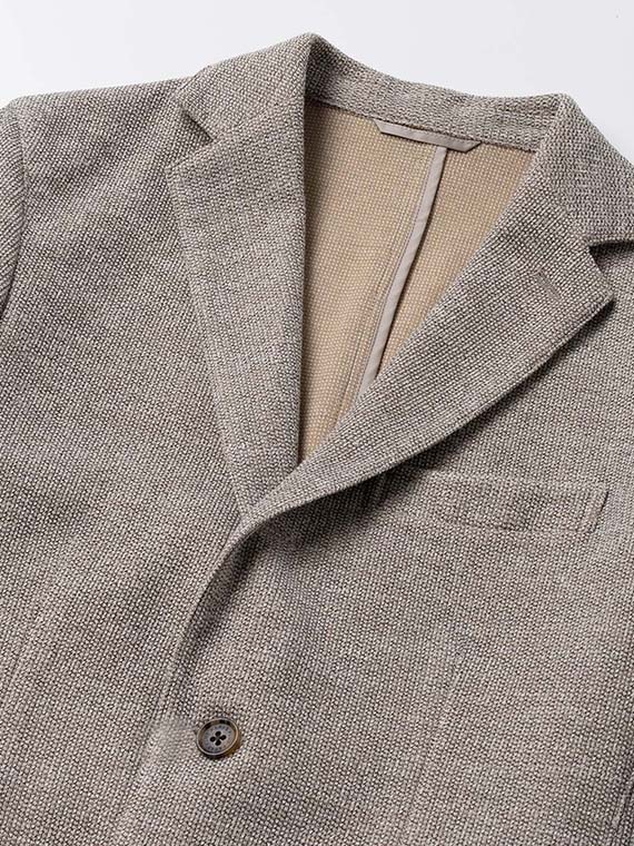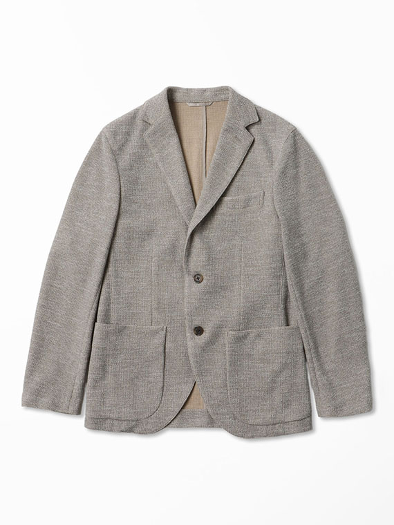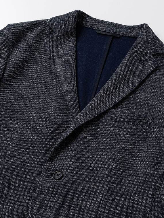 3つボタン段返り仕様のカットソージャケット。単衣仕立てに大見返しを採用し、軽やかさときちんと感を兼ね備えた仕立てにしています。