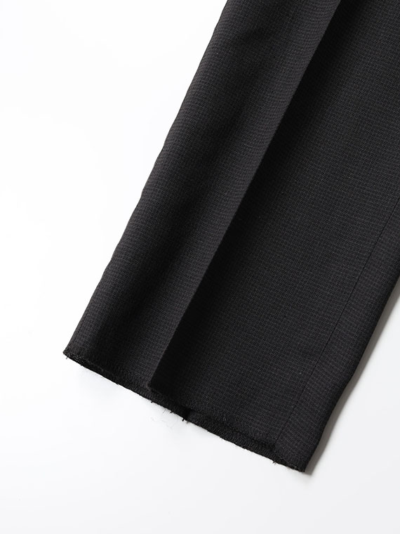 平織ベースの千鳥格子柄は、白とのコントラストで鮮明に表現した柄域と、同色系で無地調に見せた柄域を組み合わせた特徴的なデザイン。さらに、経糸にはスパン糸を使用することで、高機能素材でありながら天然素材のような自然な表情をお楽しみいただけます。爽やかで軽やかな着心地が魅力です。