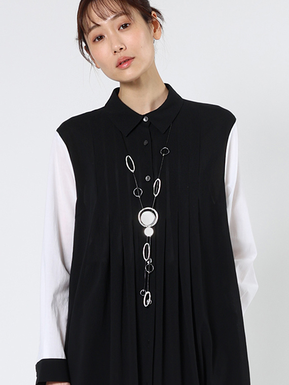 一見個性的で合わせるのもを選びそうですが、実際はさまざまなスタイルに合わせやすく、モダンにもカジュアルにも使うことができ、大活躍間違いなしの一点です。
