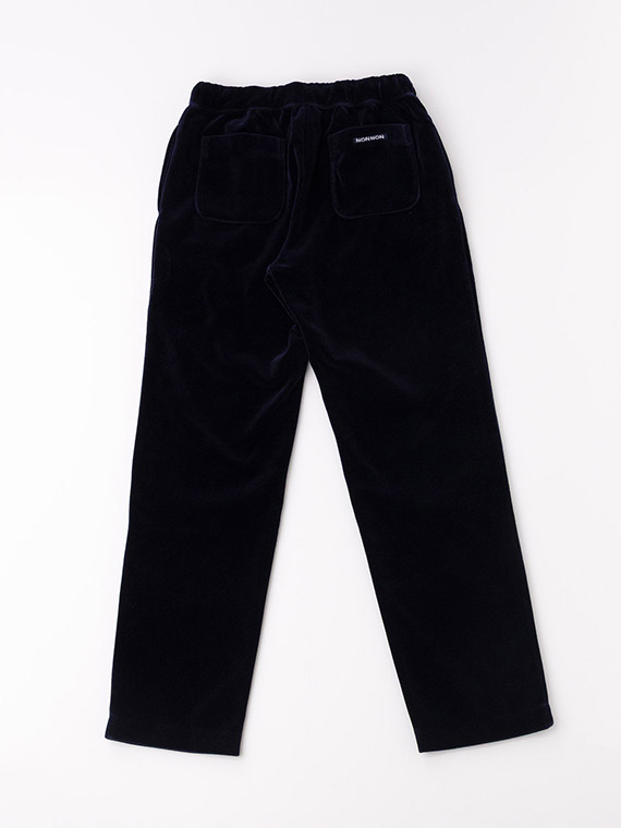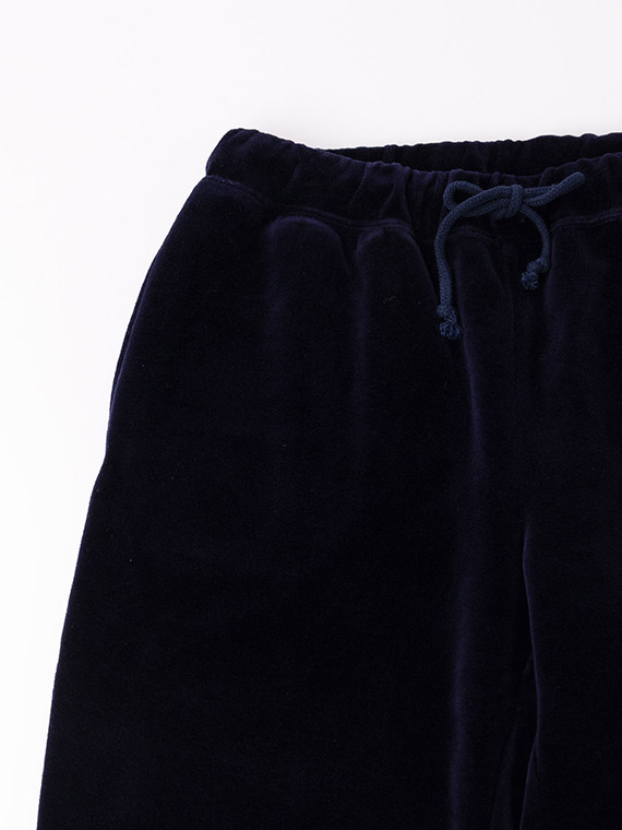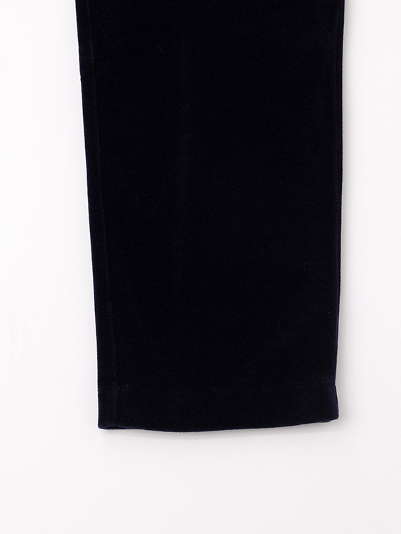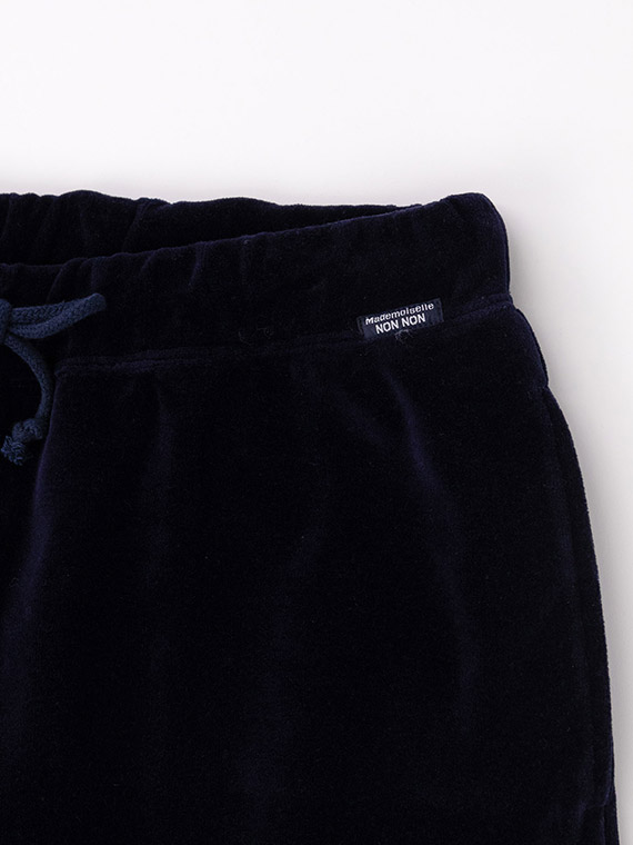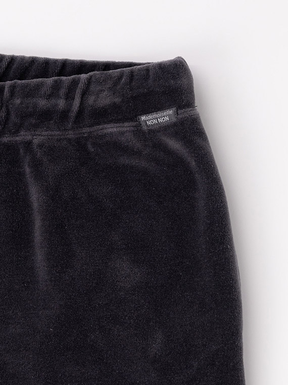 高級感のあるボリュームを感じる見た目を持ち、いつまでも触っていたくなるほど柔らかい風合いを備えているベロア生地が出来上がりました。今回は、無地の生地に加えて、複雑なオリジナルのボーダー柄の生地も作製しています。こちらの素材の独特の触り心地の秘密は、その製造工程にあります。まずパイルと呼ばれるループ状の糸が並んだ生地を作り、その表面を綺麗にカットして出来た繊維束を浮き立たせることで美しいベロア生地を完成させています。この生地は特殊な素材の為、特別な専用の織機を持っているパイル生地の産地である和歌山県・高野口で生産しています。ベロア生地には、暖かく非常に柔らかい、着心地が良い、上品な光沢がある、ドレープ感があるといった優れた特徴があります。NONNONだけの高級感を持つ素敵な製品を是非、堪能してください。