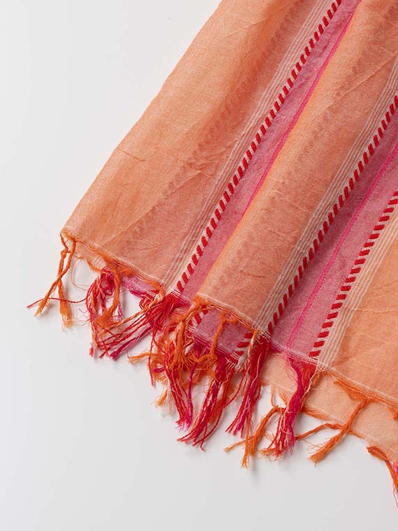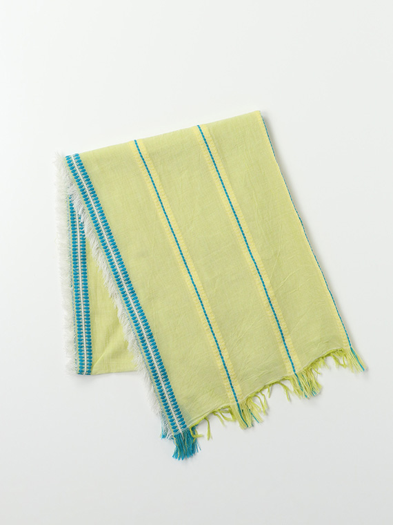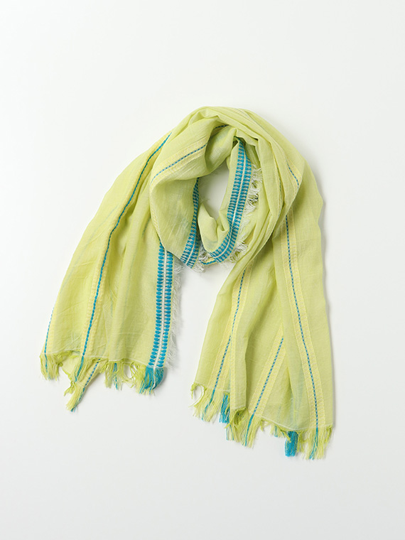 両端はフリンジ始末で、こなれた感じを演出します。