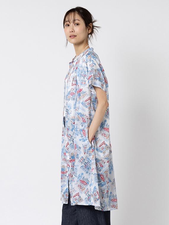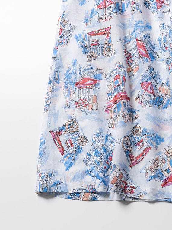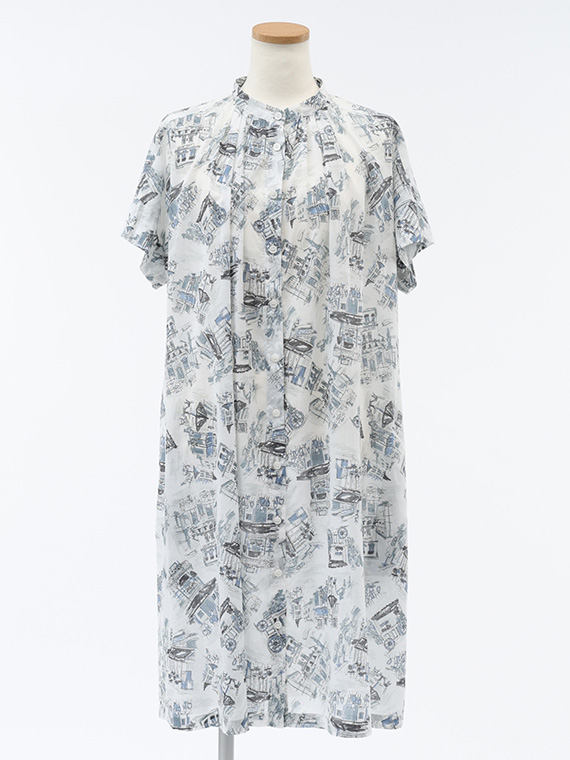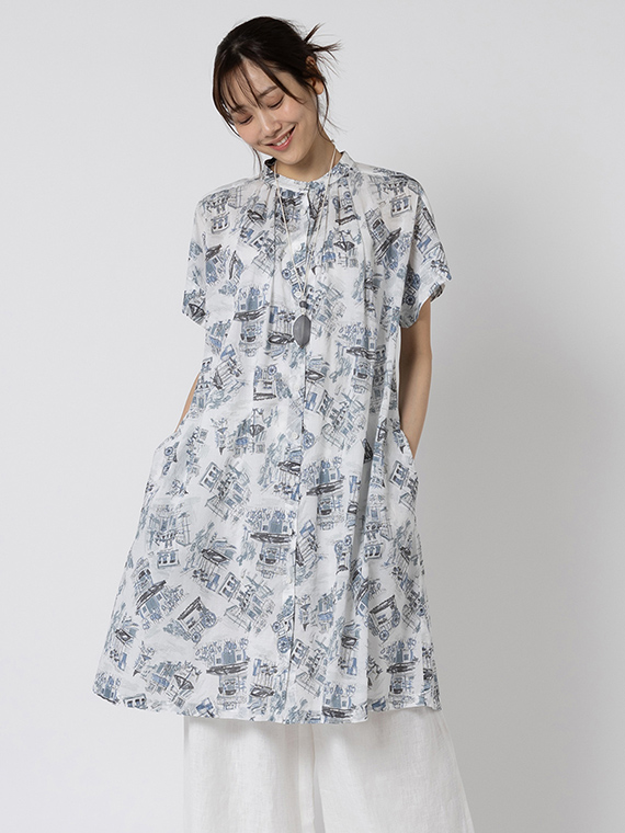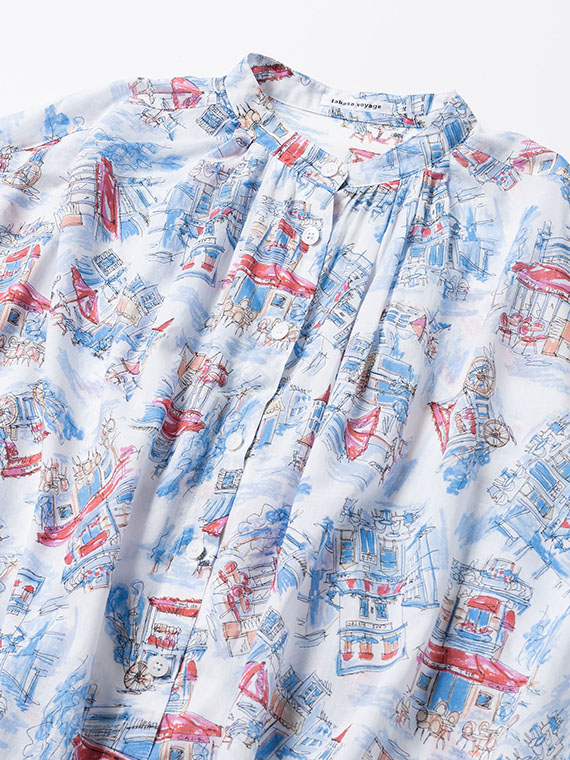 あえて透け感をもたせた素材に、軽いタッチのイラストをのせることで、プリントが浮かび上がるような奥行きが生まれました。