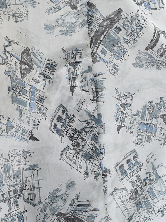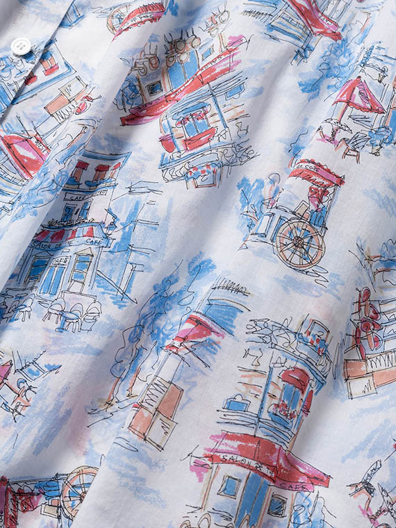 パリの小粋なカフェ風景を軽いスケッチのように描いた、心ときめくオリジナルプリントが主役です。