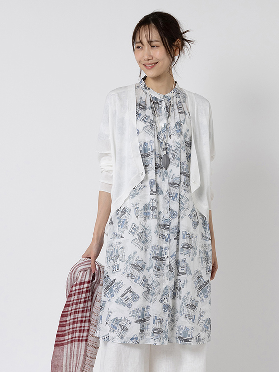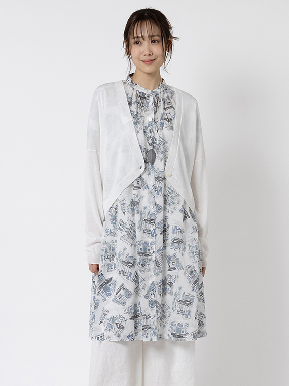 前を開けて羽織りとしてお召しいただくのも素敵で、両脇にポケットがあるのもうれしいポイントです。