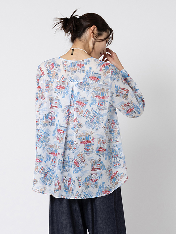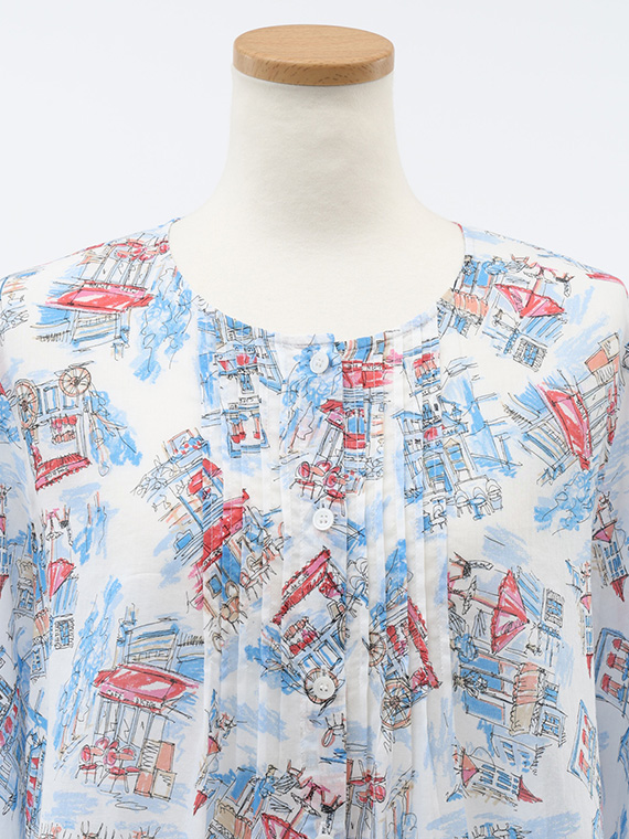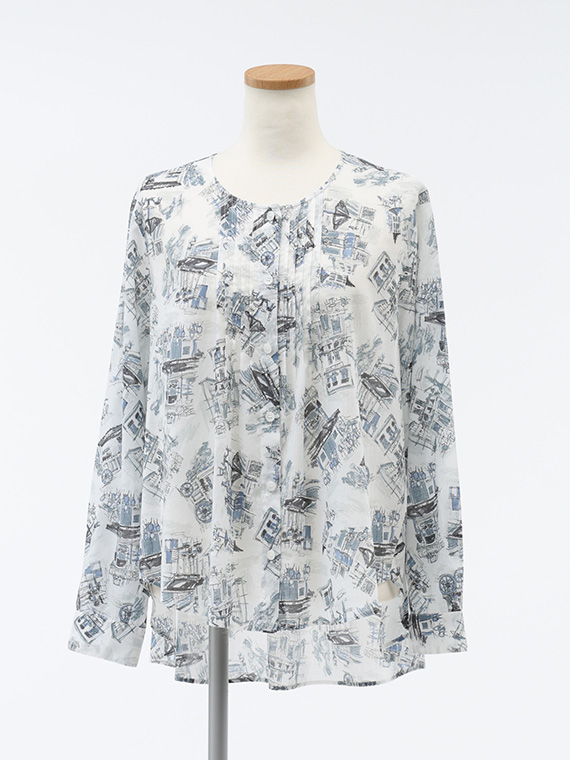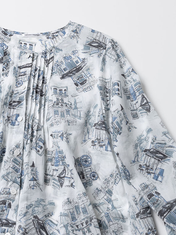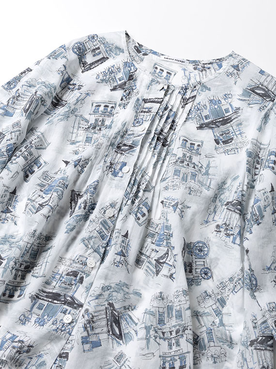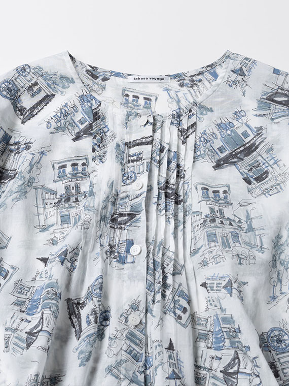 タバサらしい優しさの詰まったラウンドカラーと、胸元に施された左右5本ずつの繊細なピンタックが目を引くデザインのブラウスです。このピンタックが、お顔周りにさりげない立体感と華やぎを添えてくれます。