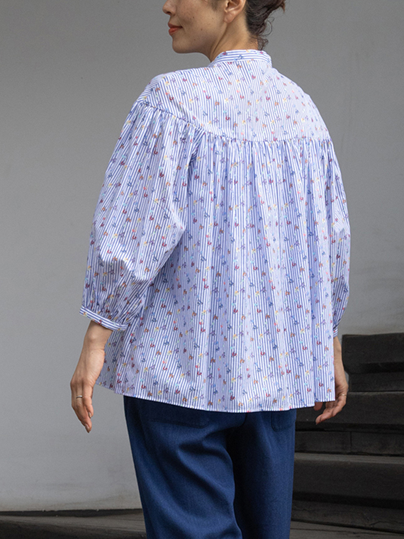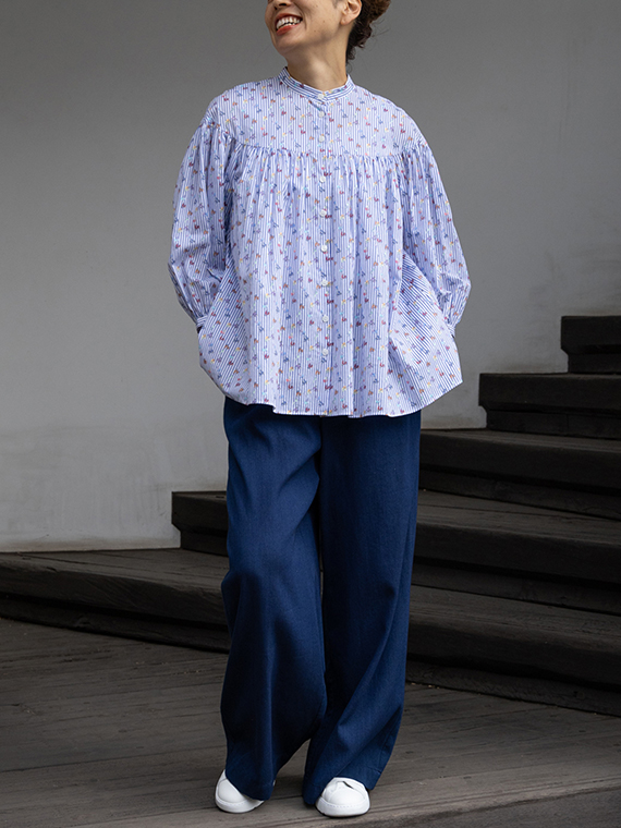 コットンローンのほど良いハリ感が、たっぷり入ったギャザーを美しくキープしてくれるので、いつでも綺麗なフォルムでお召しいただけます。