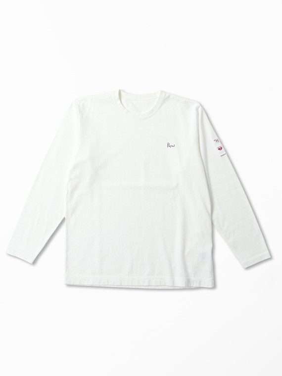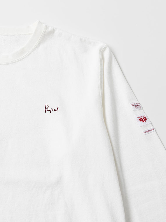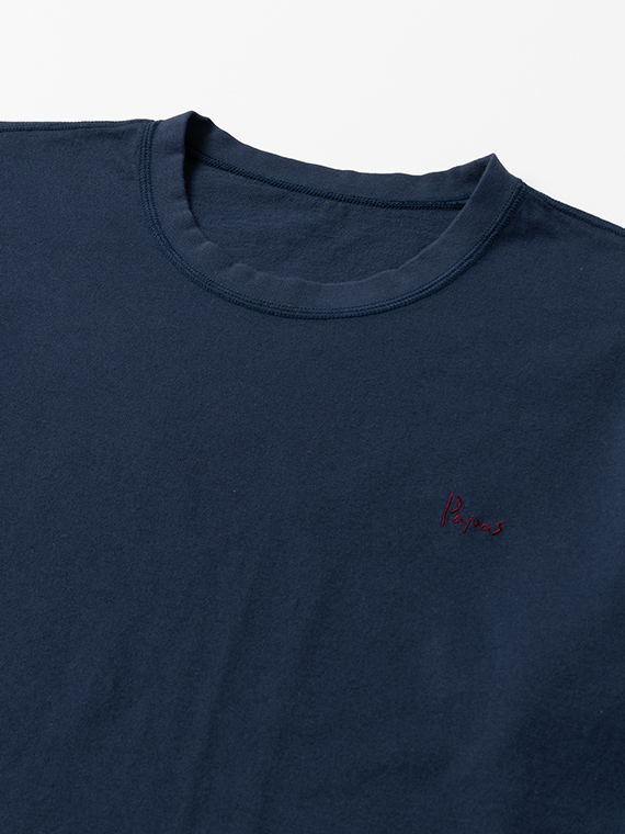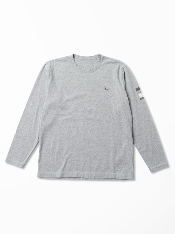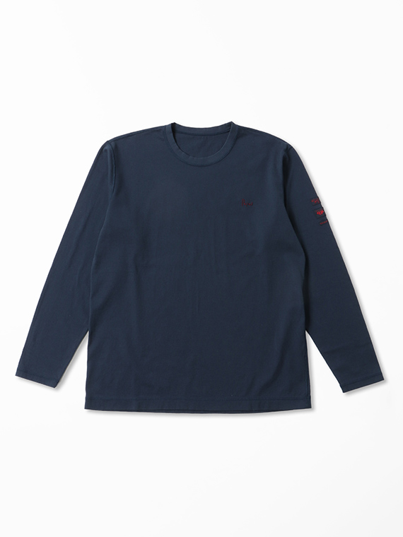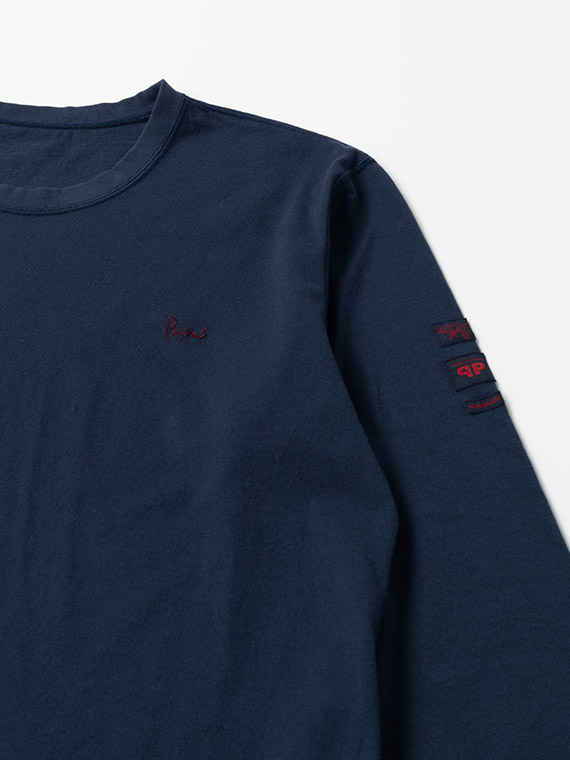 さらに左袖にはネームをたたきつけで施し、シンプルな中に程よい存在感を演出。1枚着としてはもちろん、ジャケットやシャツのインナーとしても活躍する、汎用性の高いデザインです。