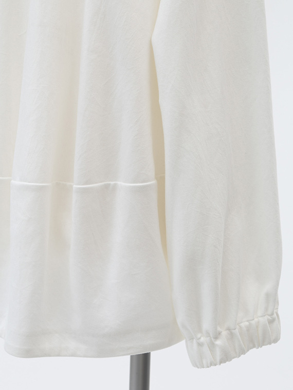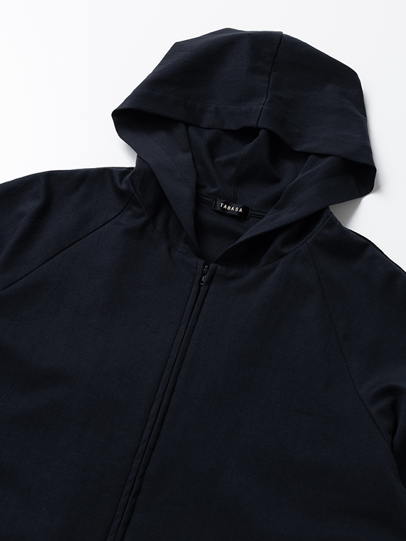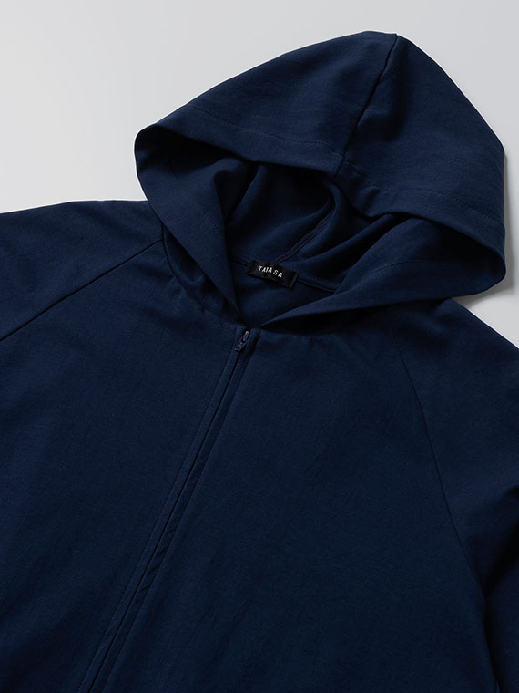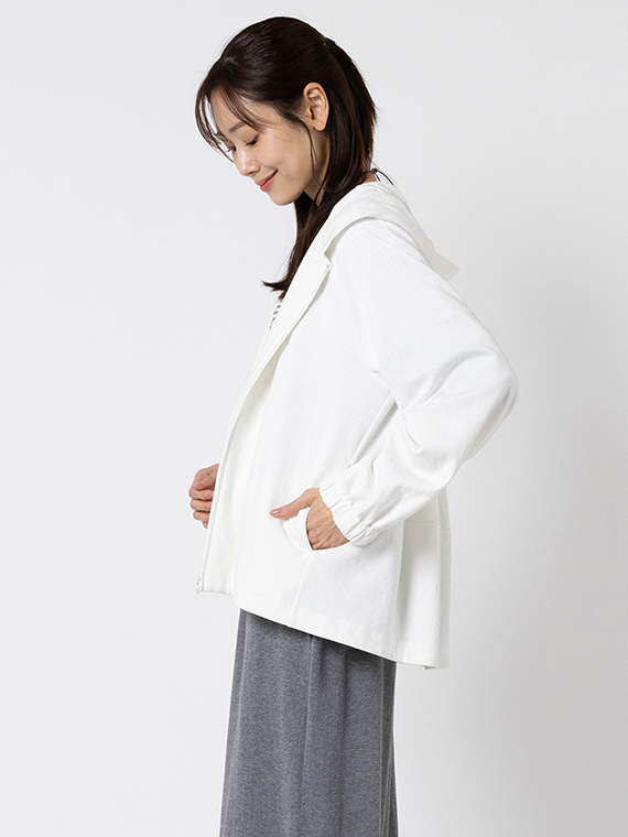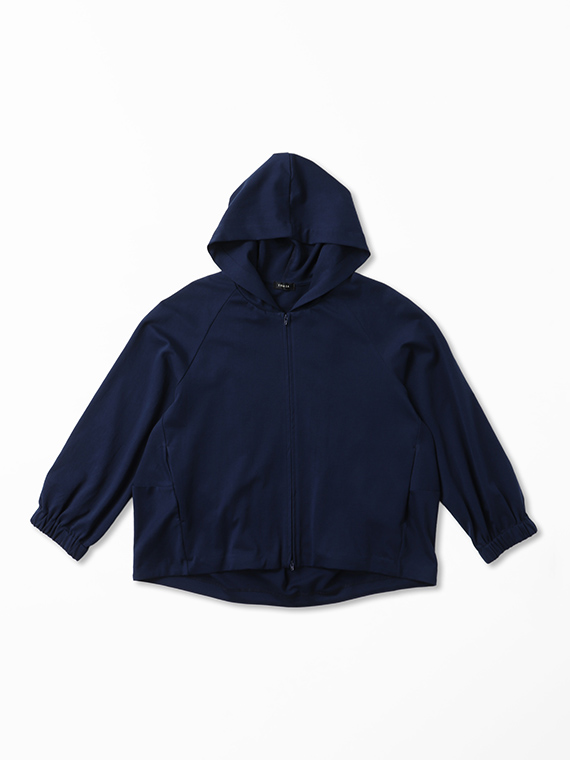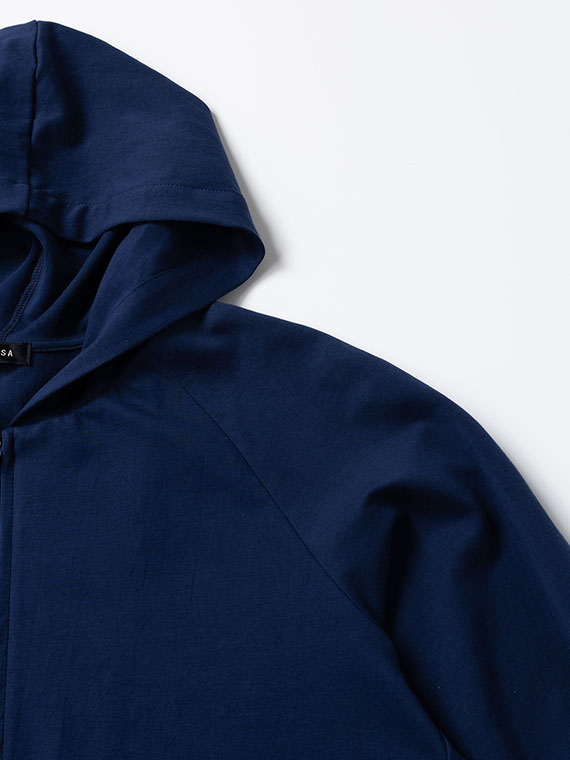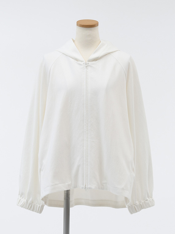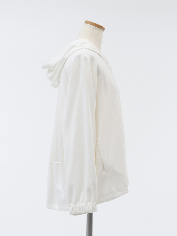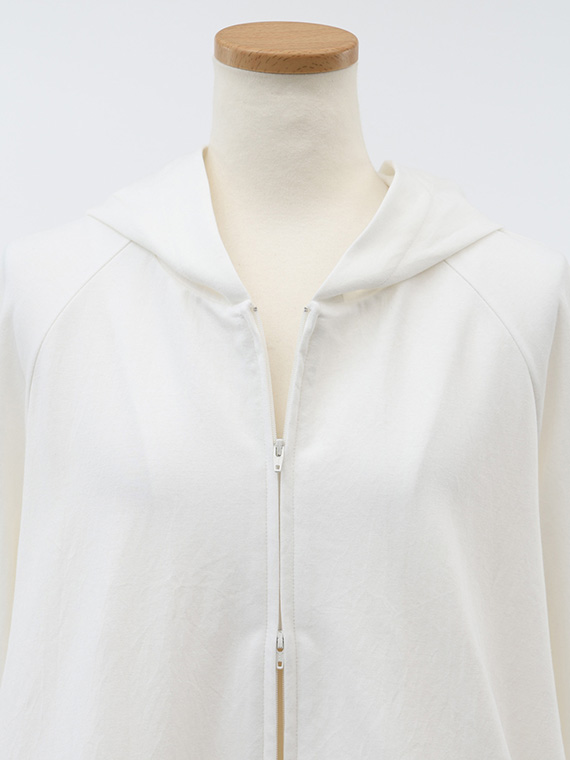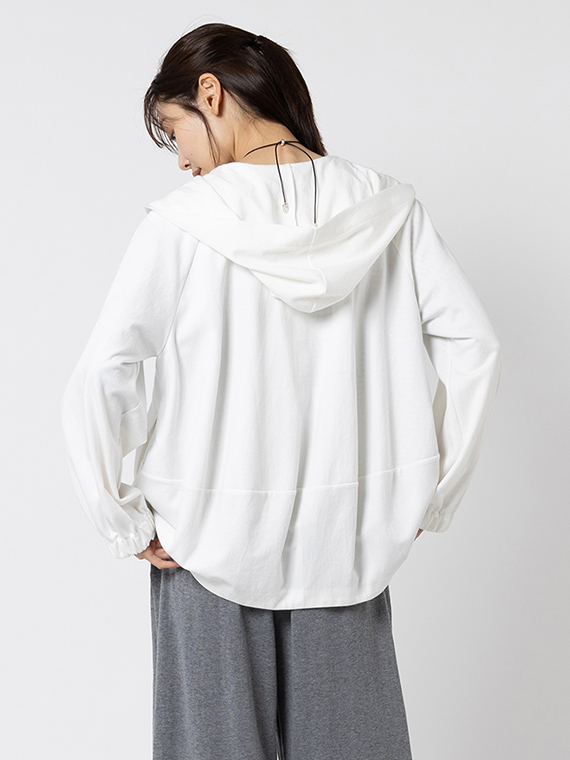 そのためバックスタイルの美しいドレープが生まれ、カジュアルになりがちなパーカーに大人のエレガンスを添えてくれます。