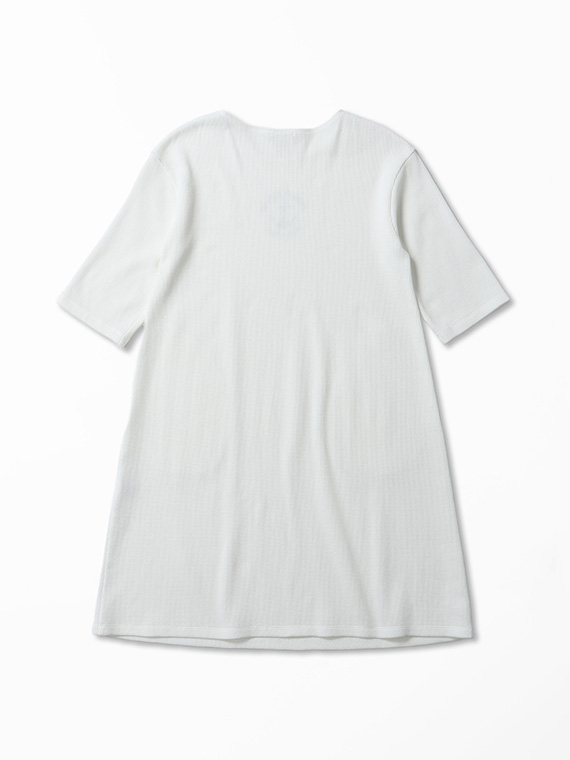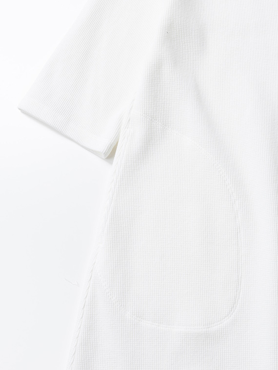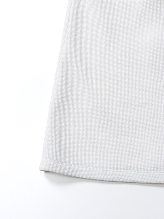 ワッフル生地特有の凸凹とした表面感が、肌との間に適度な空間を作ってくれるため、さらりとドライな質感が続きます。
