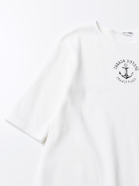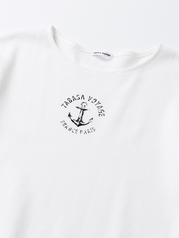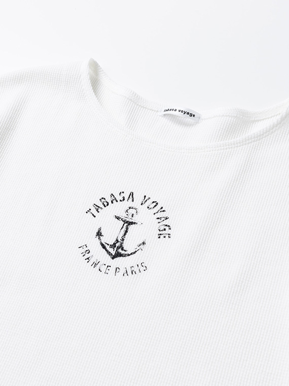 胸元には、フランスの潮風を感じるような錨(いかり)をモチーフにしたプリントを施しました。さわやかで元気なデザインが、さりげない大人の遊び心を演出しています。