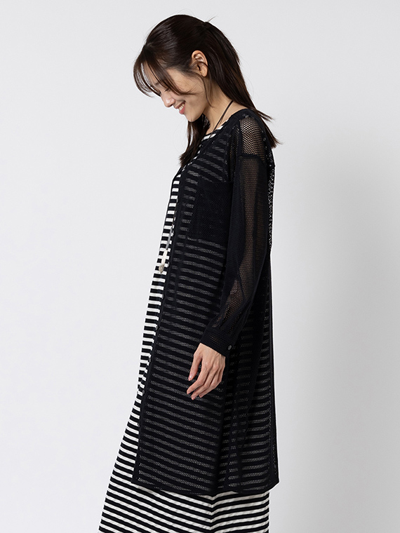 中のインナーやワンピースが透けて見えることで、奥行きのある洗練されたスタイルが完成します。
