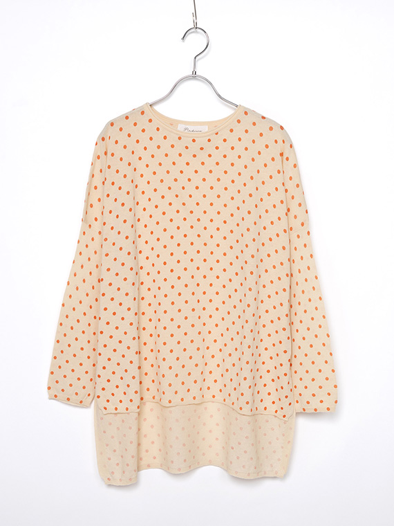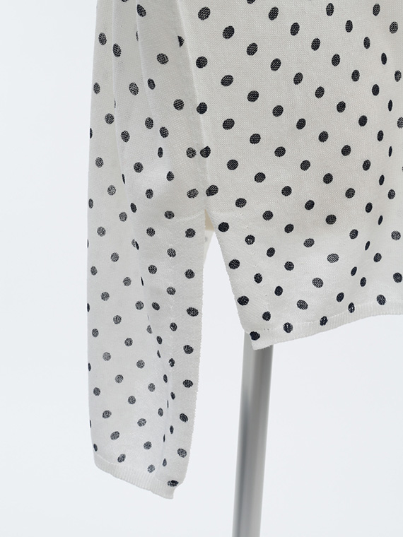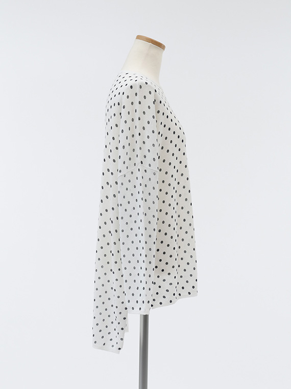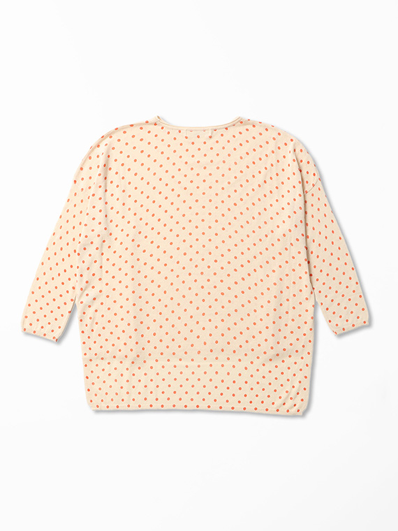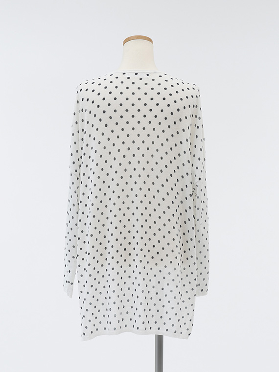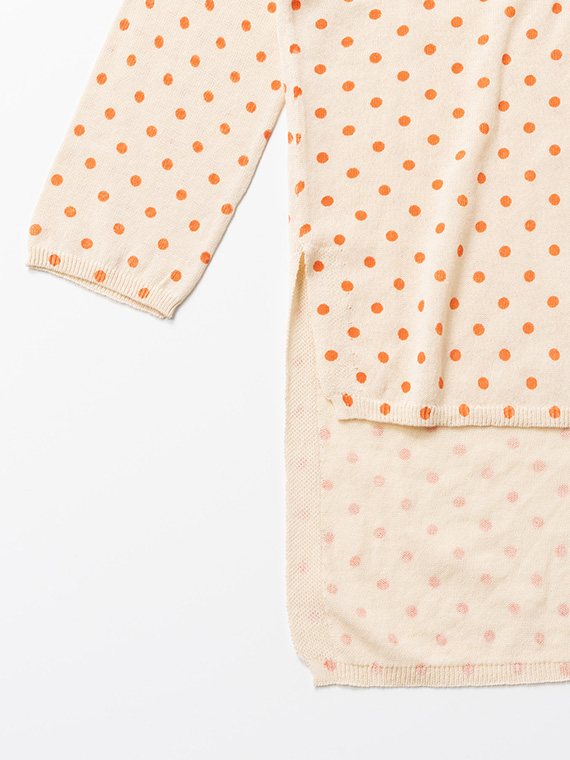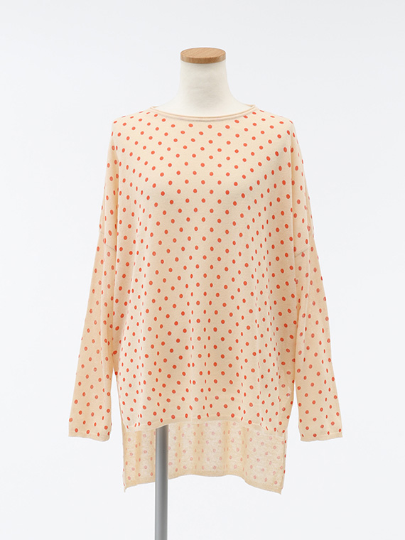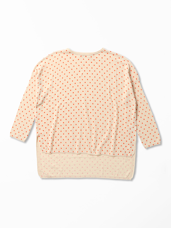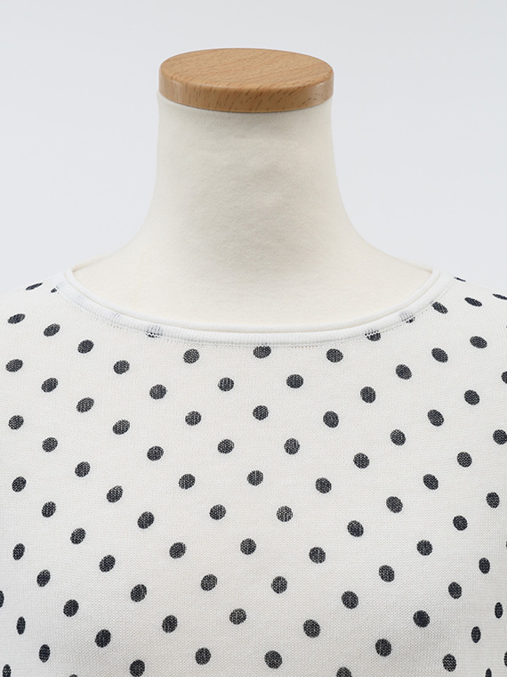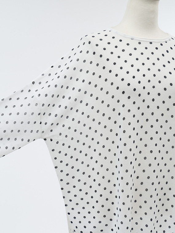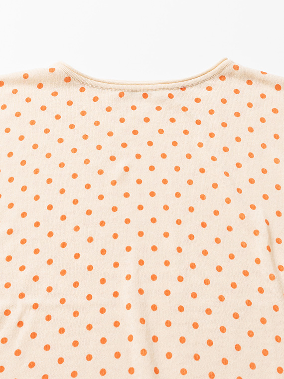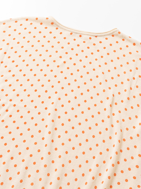 ニット地にプリントを施しているため、ドットにわずかなゆがみやかすれ、色の強弱が自然に生まれます。