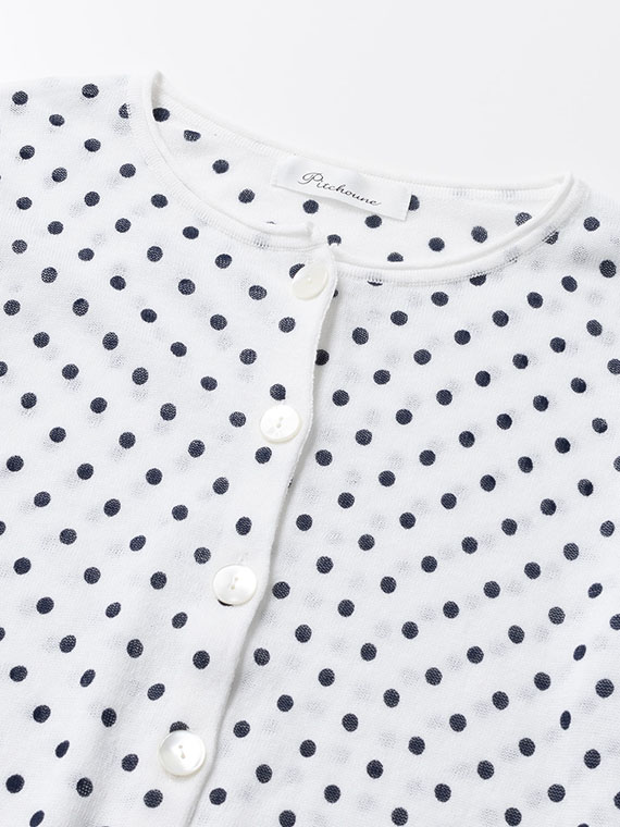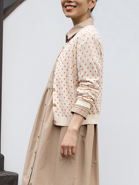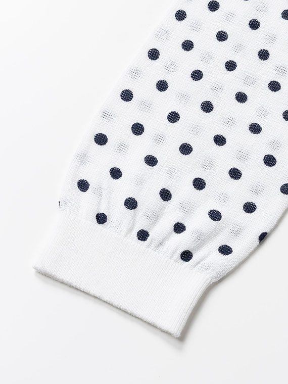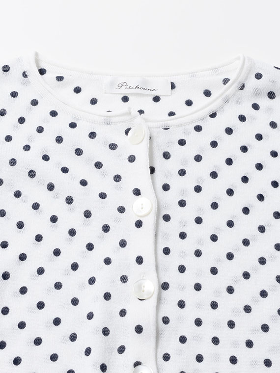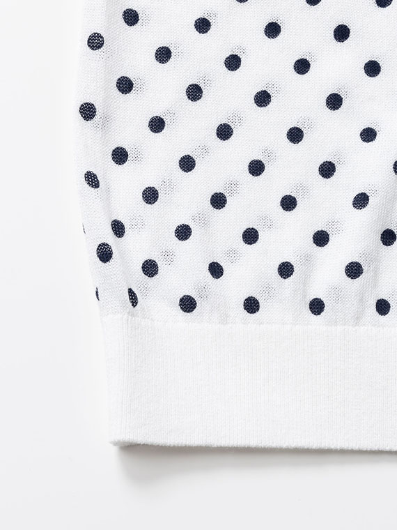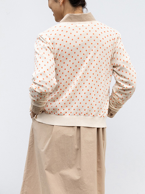 ニット地にプリントを施しているため、ドットにわずかなゆがみやかすれ、色の強弱が自然に生まれます。