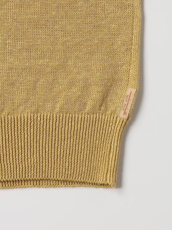 原料の原産地はベルギーのコルトレイク地方です。この地は涼しい気候と豊富な水が揃っており、フランス、オランダと並んで常に良質な原料が収穫され、最高品質の亜麻糸(フラックスリネン)を産出することで知られています。原料の特質としては、繊維はラミーに比べ半分程度の細かさで、これがリネンの持つ本来の風合特徴である、綿に近いしなやかさの元となっております。さらに、その中でもベルギーリネンはとろみのある柔らかさが特徴として際立ちます。着れば着るほど馴染んでいき、愛着の湧く素材感を長くお楽しみ頂けます。今回、原糸の製造から糸としての最終仕上げまで、ご家庭での手洗い洗濯に堪えられる“ウォッシャブル”を狙ったオリジナルの独自製法にて開発をした素材です。