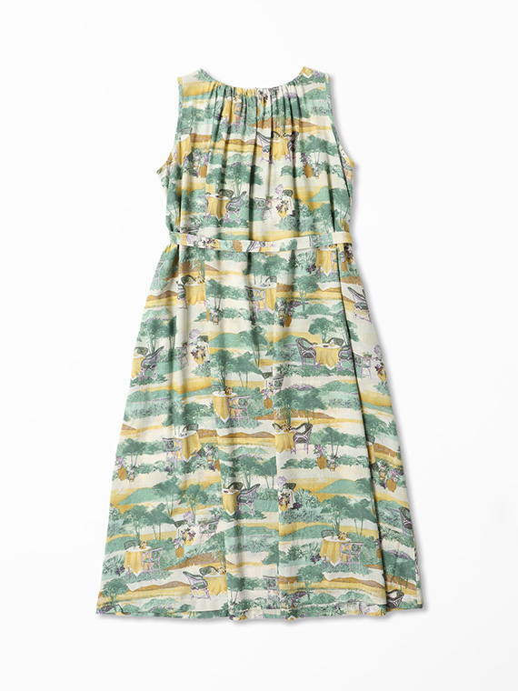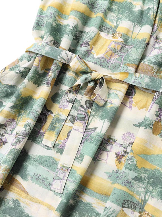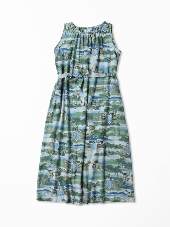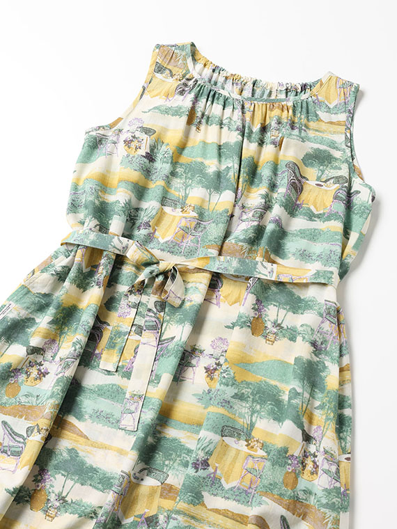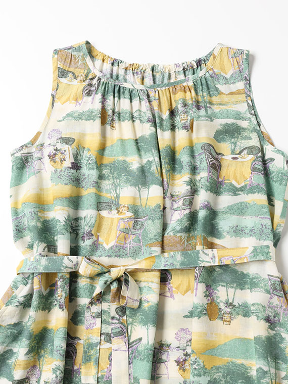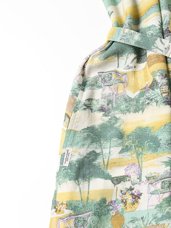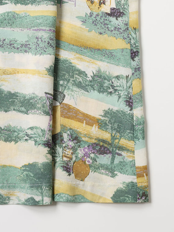 軽やかなタッチの風景画を、手捺染で丁寧に表現。纏うだけで物語を感じさせるアートな一枚です。