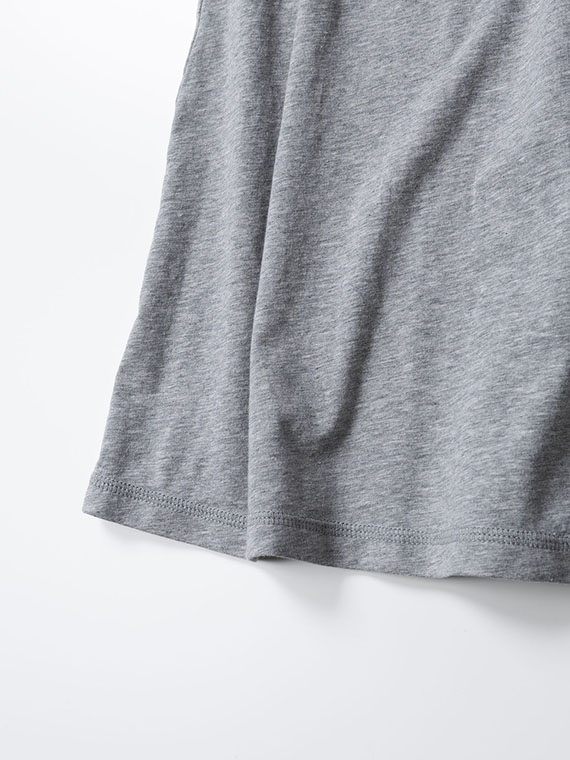 超長綿繊維の上質な綿にポリウレタンを交編しています。スーピマ綿はしなやかで柔らかく、滑らかな肌触りが特徴の生地ですが、スーピマ綿にポリウレタンを交編することで、程よいキックバックと、型くずれの起きにくい素材になりました。また仕上げ加工にもこだわり、特殊な柔軟加工を施すことでスーピマ綿の素材の良さを最大限に引き出しています。ストレッチ性があるのでインナーからボトムスまで幅広いアイテムに対応した素材に仕上がっています。着用した際に違いが分かるこだわりの素材です。
