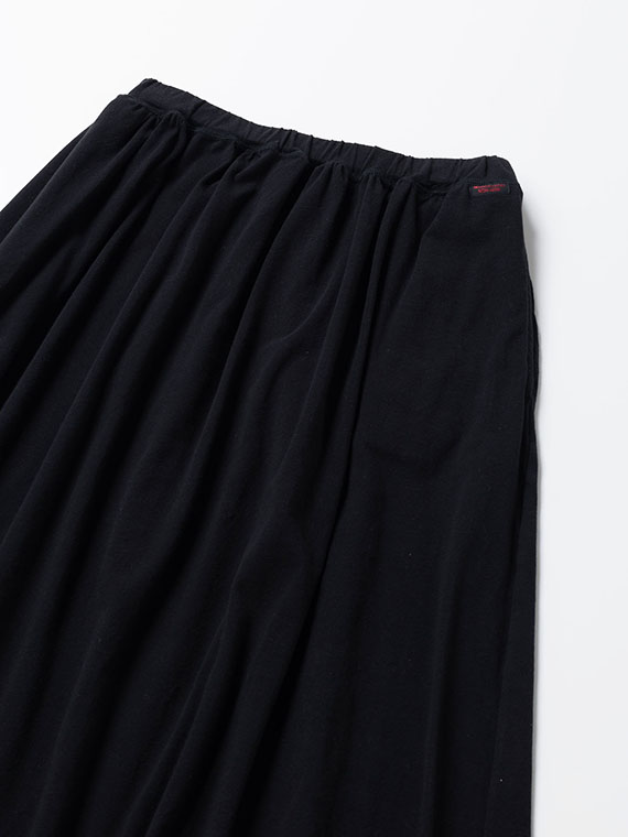 軽やかに揺れるギャザーが、装いにやわらかな表情をプラス。ウエストはゴムと共紐入りで、リラックスして着用いただけます。