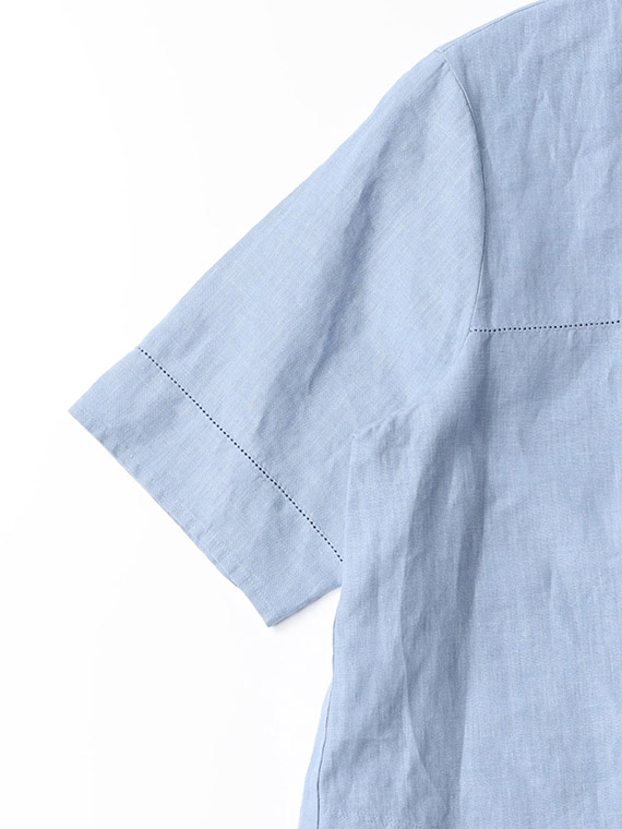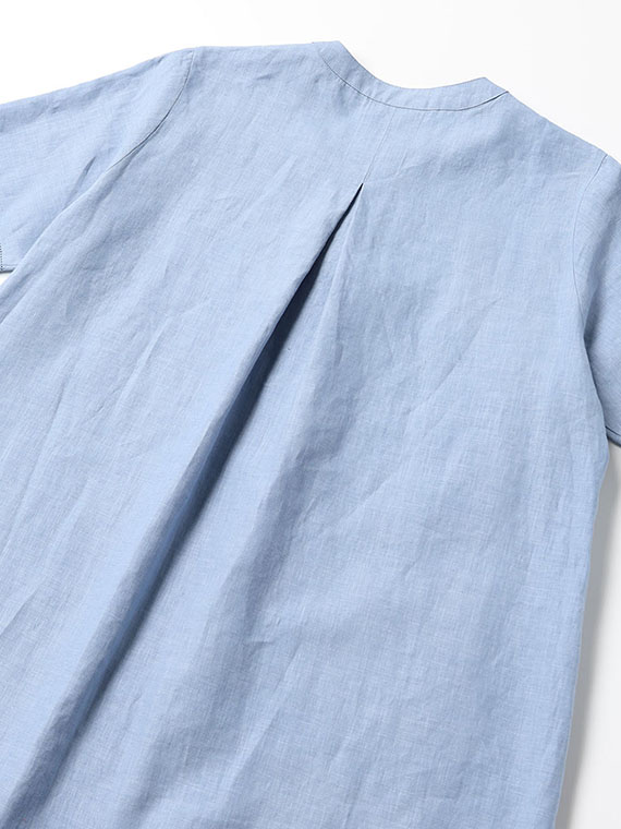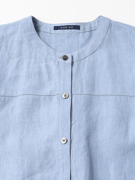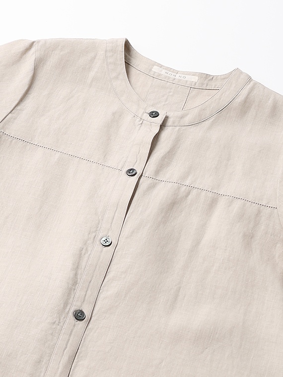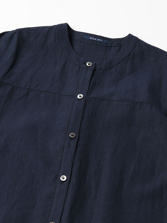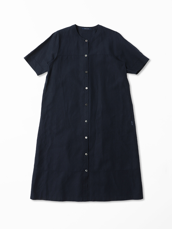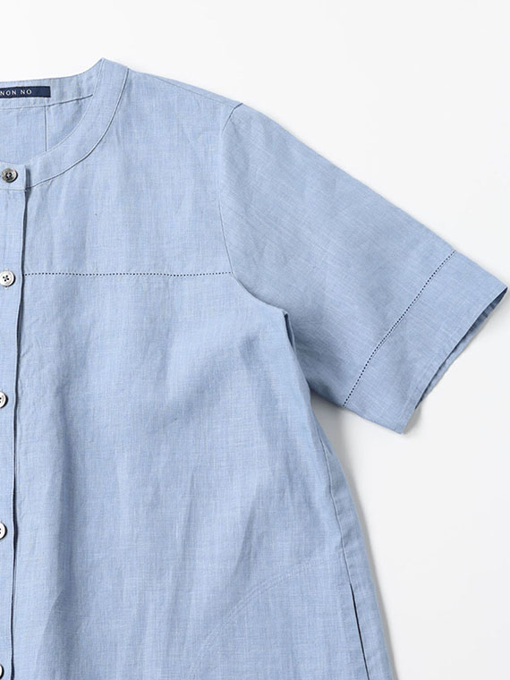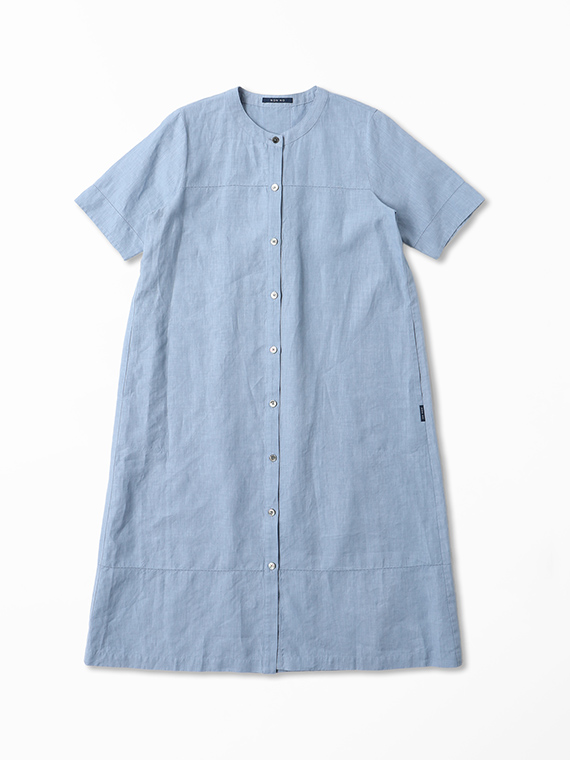 リネンポプリン アイレット入りノーカラーワンピース