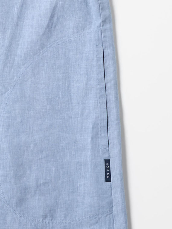 タテ・ヨコ糸共に、1/60のリネンにて高密度に織り上げられたポプリンです。原糸以外の糸加工・織工程・染色~仕上げを麻の産地である滋賀県湖東市で行っており、通称「JAPAN LINEN」とも呼ばれています。仕上げにはCC加工と言う、麻の風合いの良さを最大限に生かす湖東産地特有のワッシャータンブラーを施す事で、非常に柔らかくナチュラルな仕上がりとなっています。