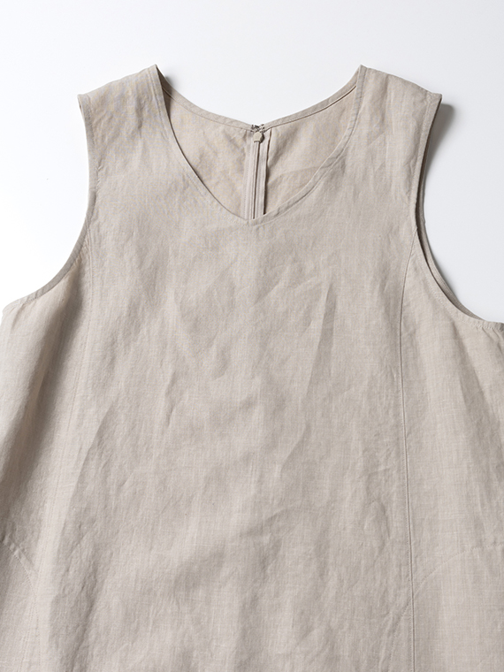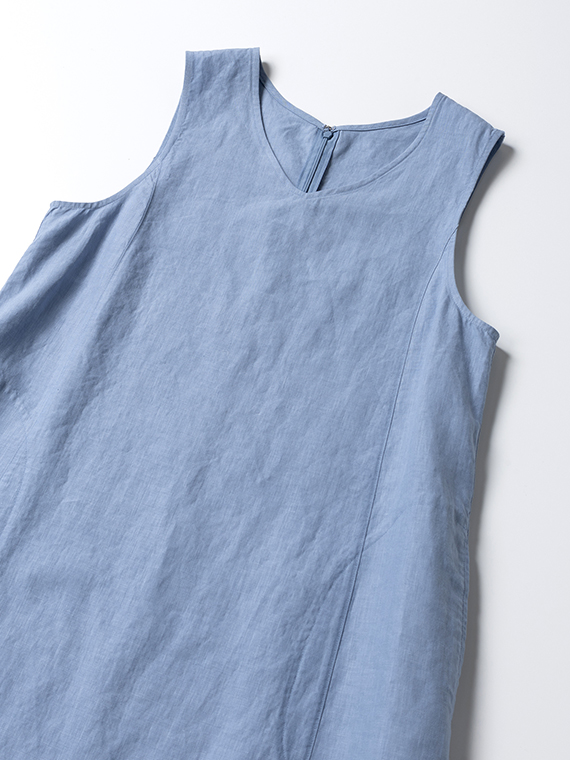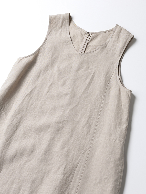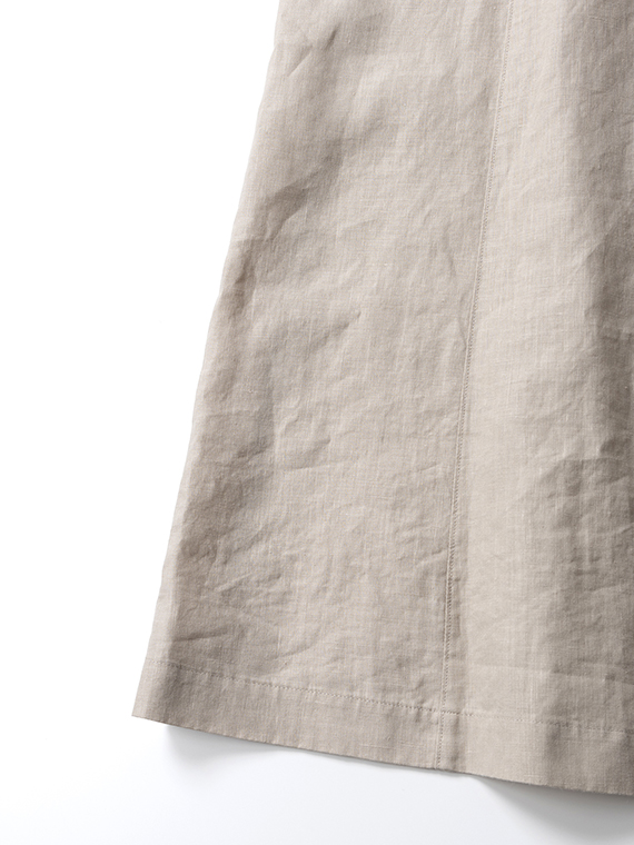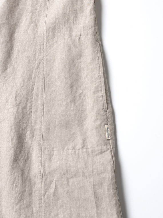 タテ・ヨコ糸共に、1/60のリネンにて高密度に織り上げられたポプリンです。原糸以外の糸加工・織工程・染色~仕上げを麻の産地である滋賀県湖東市で行っており、通称「JAPAN LINEN」とも呼ばれています。仕上げにはCC加工と言う、麻の風合いの良さを最大限に生かす湖東産地特有のワッシャータンブラーを施す事で、非常に柔らかくナチュラルな仕上がりとなっています。