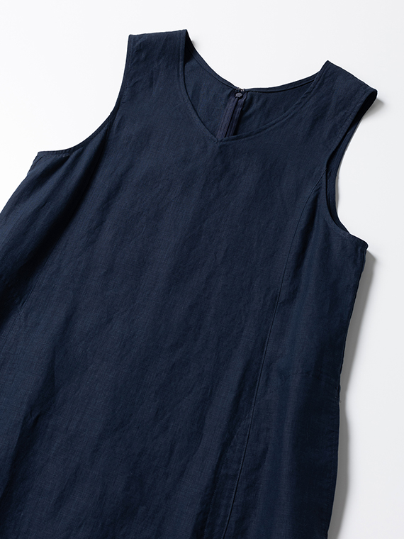 後ろファスナーあき仕様で、着脱もスムーズ。インナー次第でロングシーズン活躍する一着です。