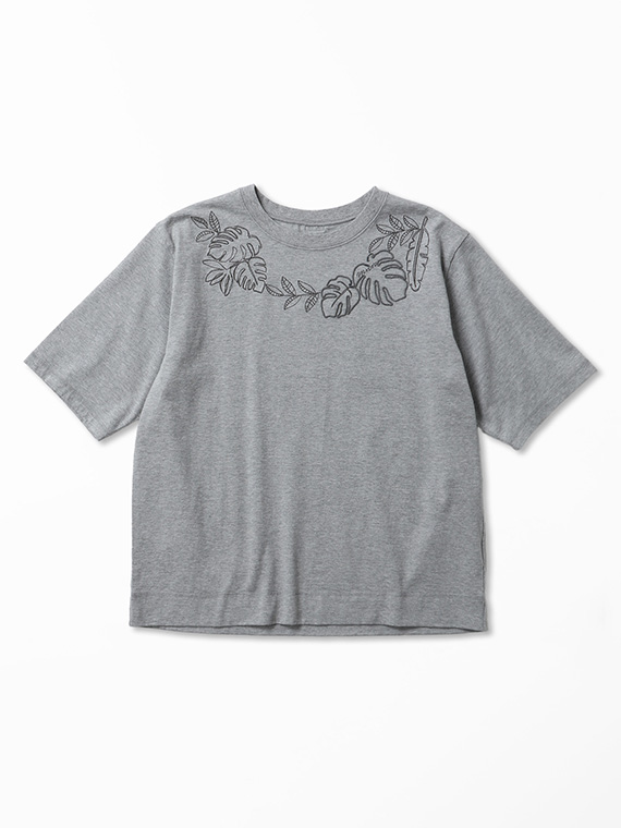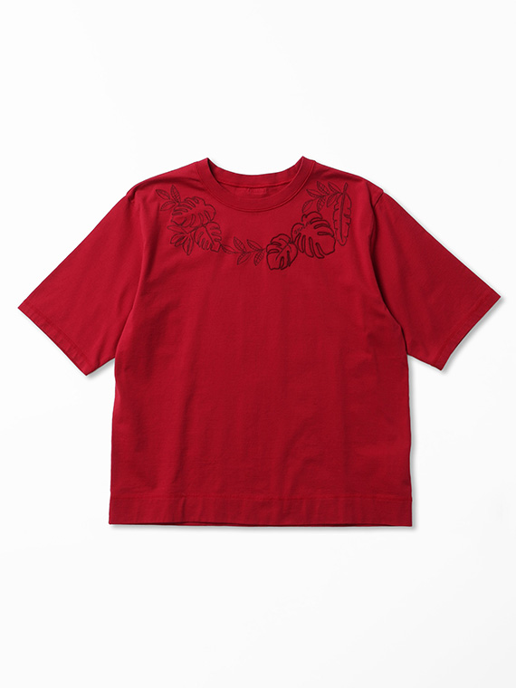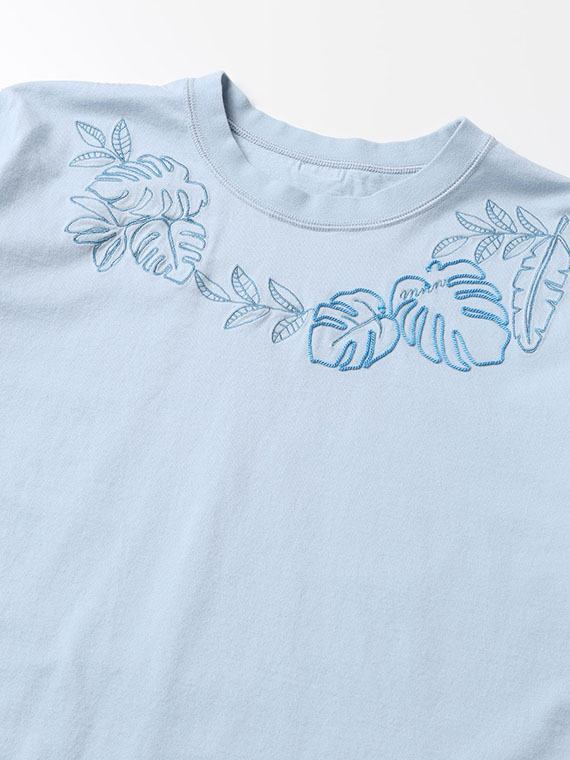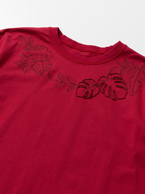 ※前身頃1色刺繍+1色ロープ刺繍 (モンステラ)