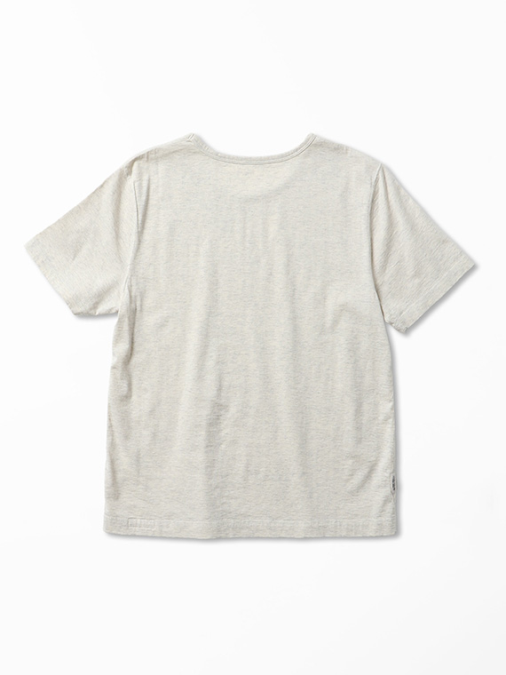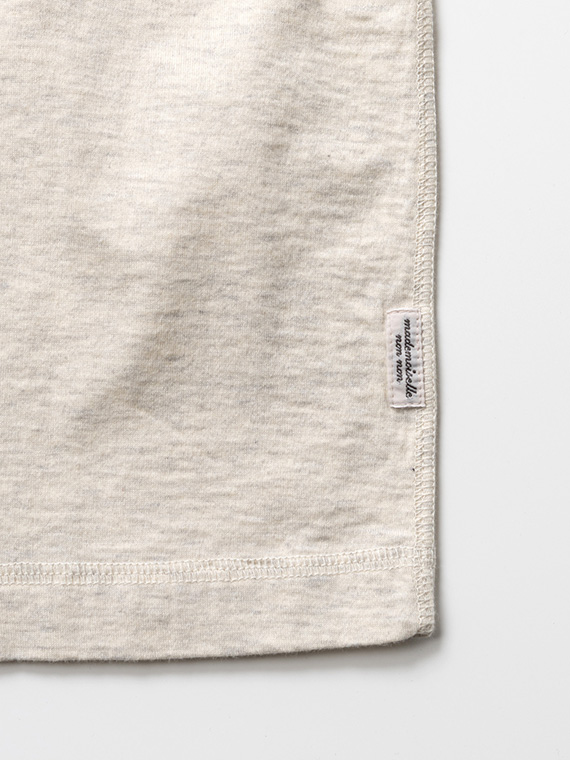 60/2コンパクト糸を使用しています。2本の糸を同じ撚り数にして、丁寧に双糸加工を施すことで斜行を軽減しています。染色はなるべく化学薬品は使用せず、生地に負荷をかけずに、優しく、丁寧に、空気を含ませながら染色しています。コンパクト糸の綺麗な表面感と肌触り、環境に優しい染色方法で仕上げた着心地の良い天竺です。