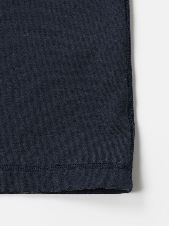 ガス焼きを施した40/2の糸を使用して天竺生地を編み上げています。ガス焼きによって不要な毛羽を取り除く事で、毛羽立ちが少なく、光沢感が増し、清涼感が感じられる生地に仕上げています。