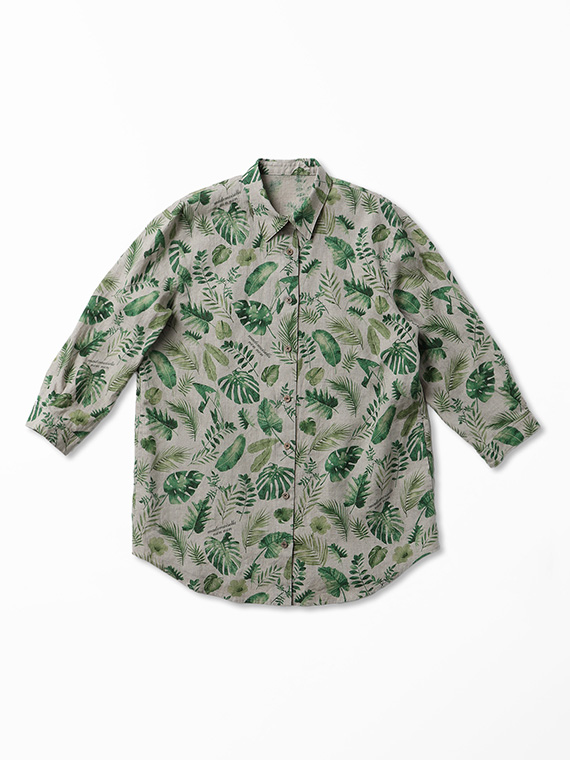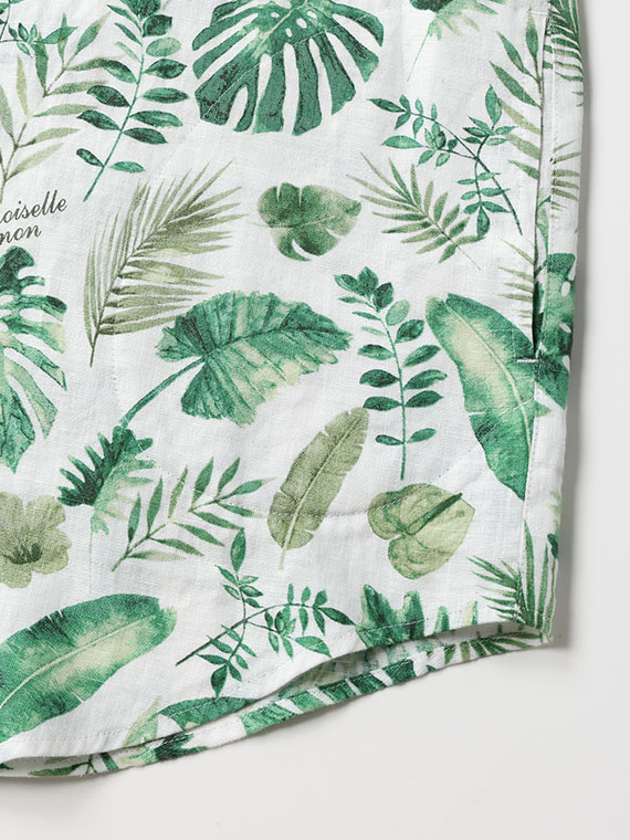 夏のトロピカルなさまざまな葉を、水彩画のやさしいタッチで描きました。流れるような構図が美しく、存在感のあるデザインに。