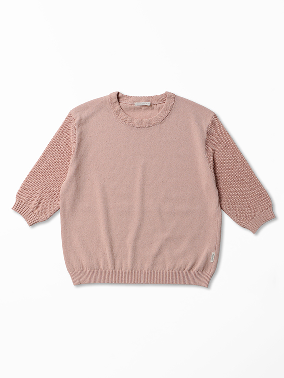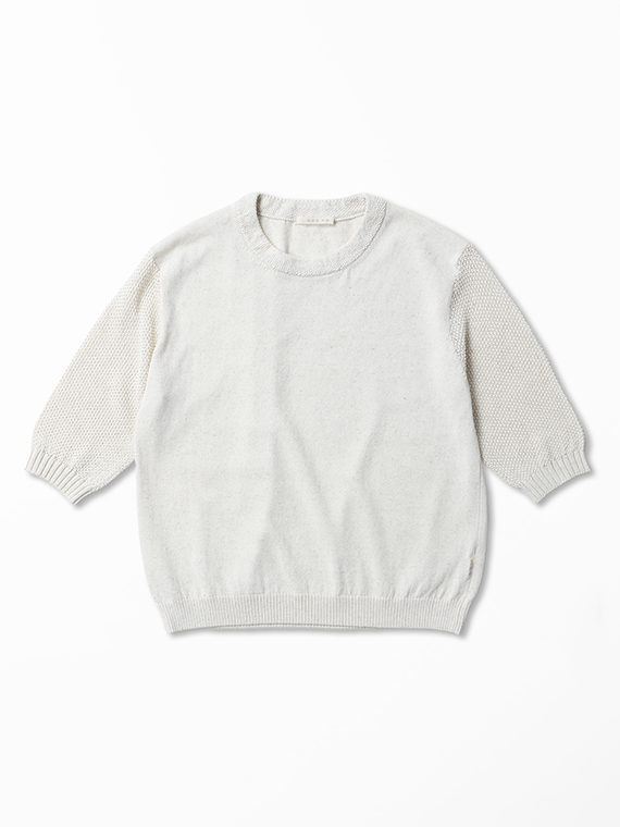 綿麻ミックスウオッシャブル 透かし柄スリーブニットプルオーバー