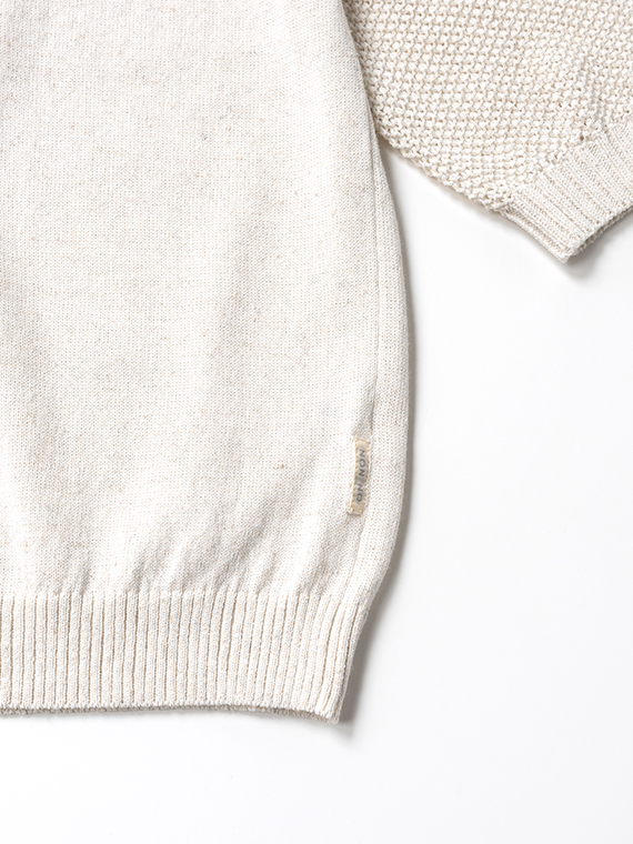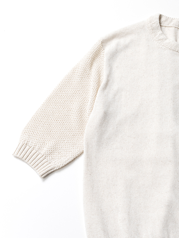 衿と袖口はカノコ編みで切り替え、さりげないアクセントに。