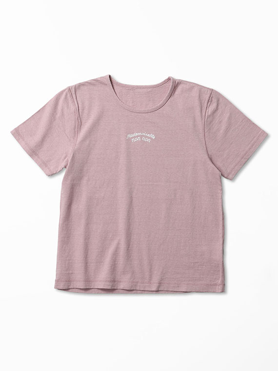 綿の心地よさを活かし、より快適に着られるよう仕上げたオリジナル素材です。胸元の1色チェーンロゴ刺繍が、シンプルなデザインのポイントに。