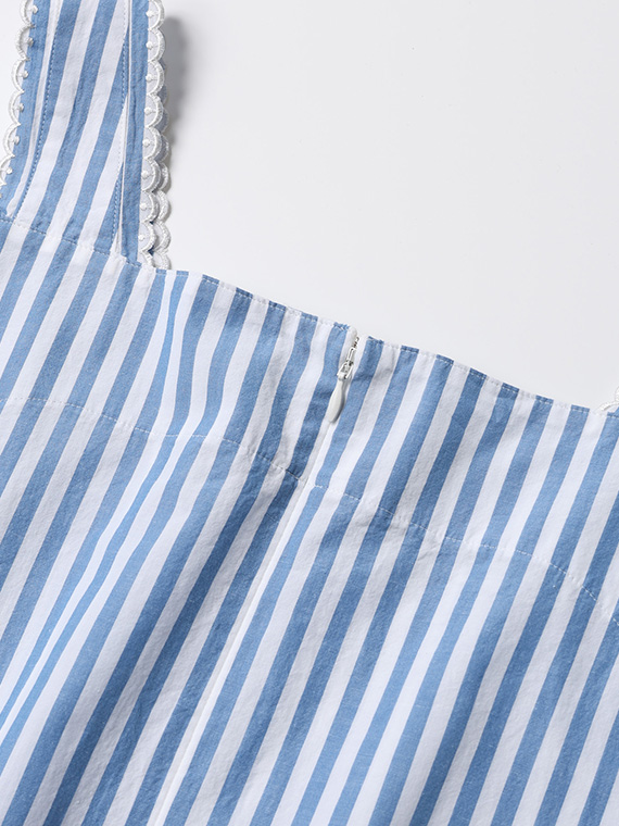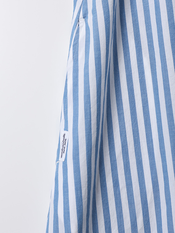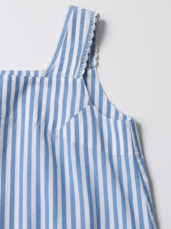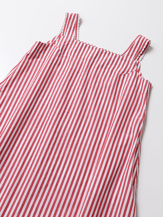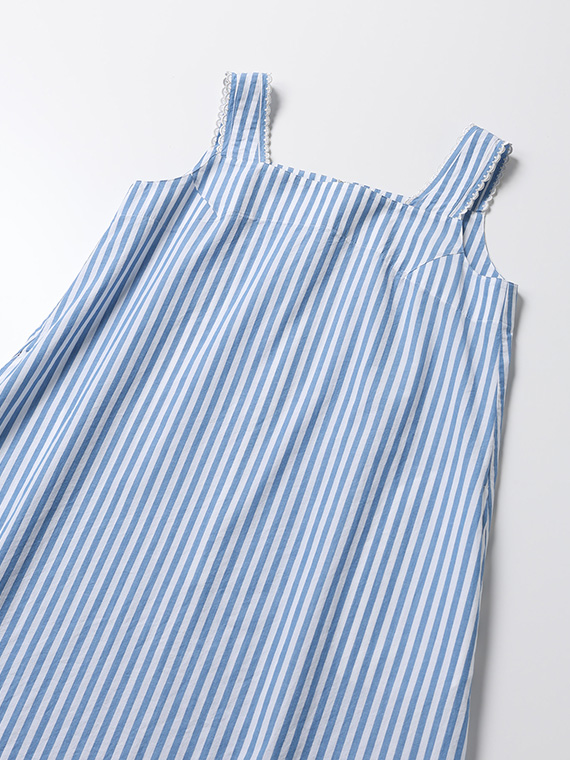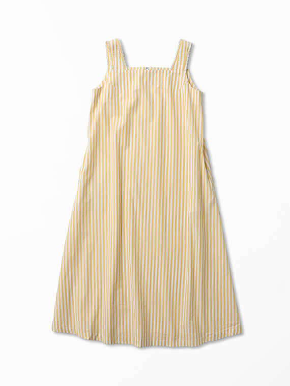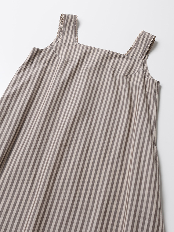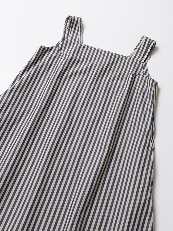 コットンラミーリネンストライプワッシャー ノースリーブワンピース